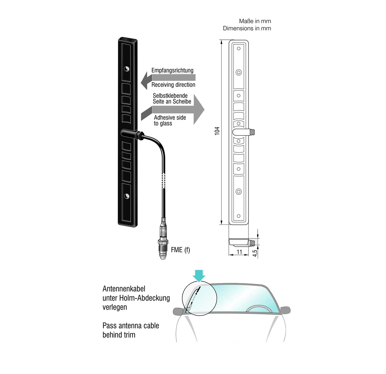 Glasklebe-Innenantenne zur Klebebefestigung an der rechten Seite der Frontscheibe für den Mobilfunkempfang