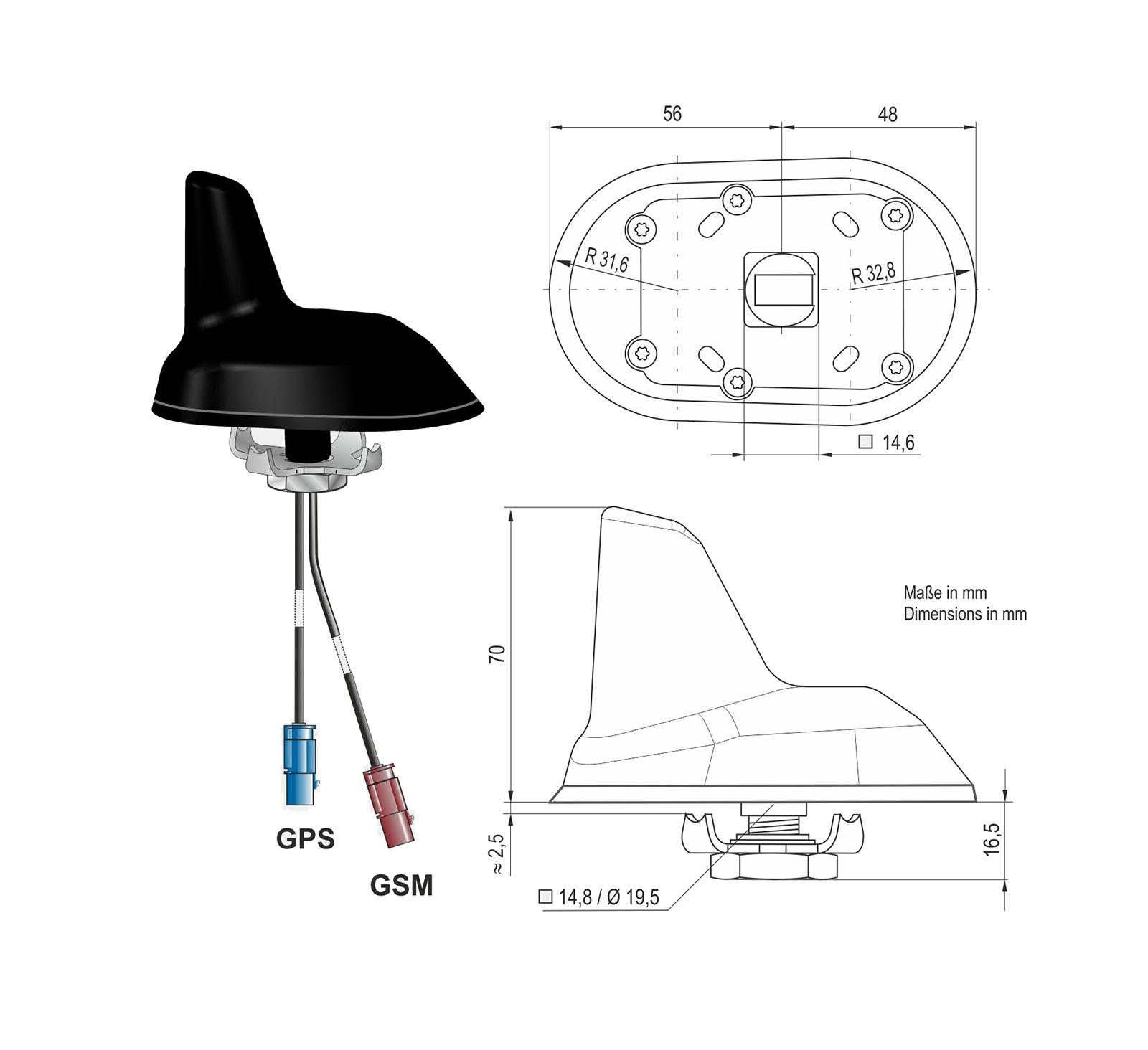 Antenne Bad Blankenburg - Kombiantenne GSM, UMTS, GPS, Haifischdesign, 2x FAKRA - 3784.01