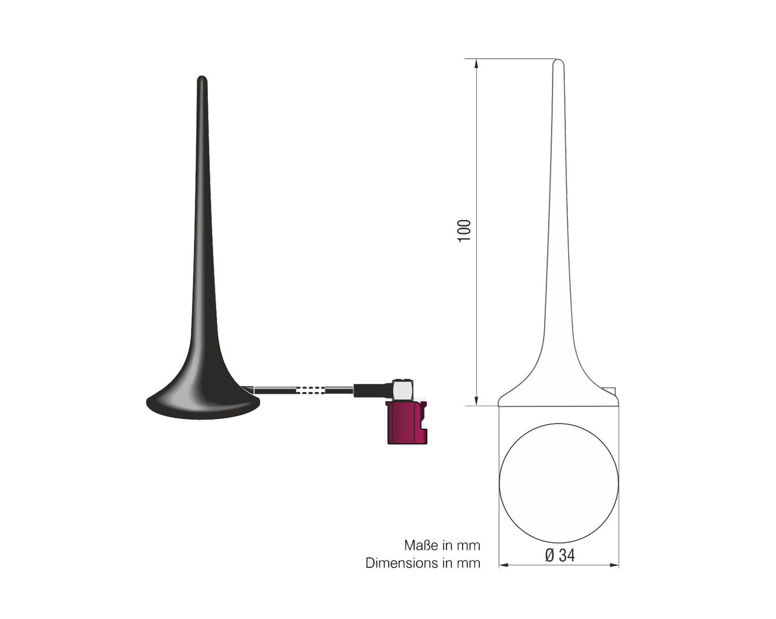 Magnethaftantenne für den Mobilfunkempfang und stationäre Anwendung mit folgenden Eigenschaften:
