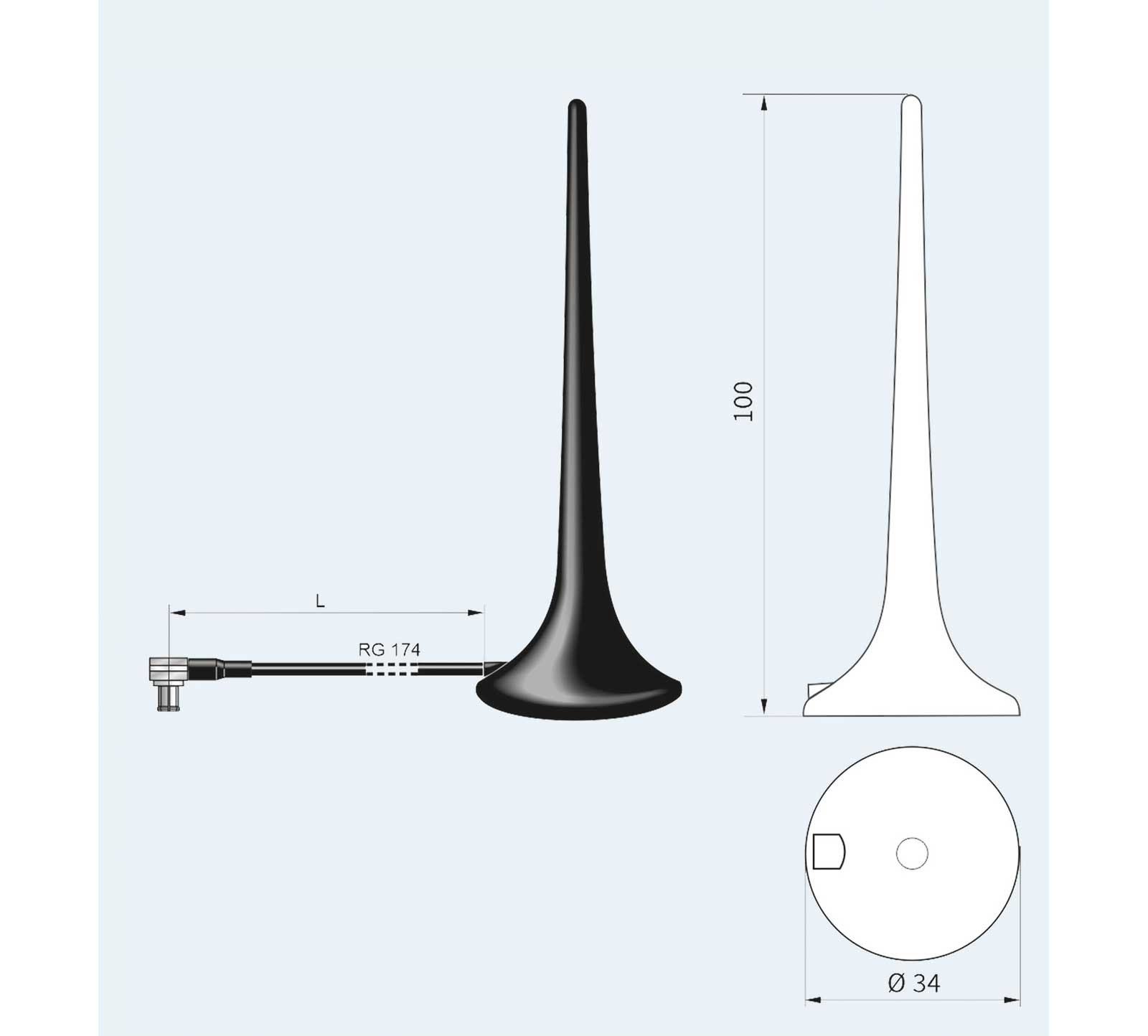 Magnethaftantenne für Stahlblechoberflächen mit folgenden Eigenschaften: