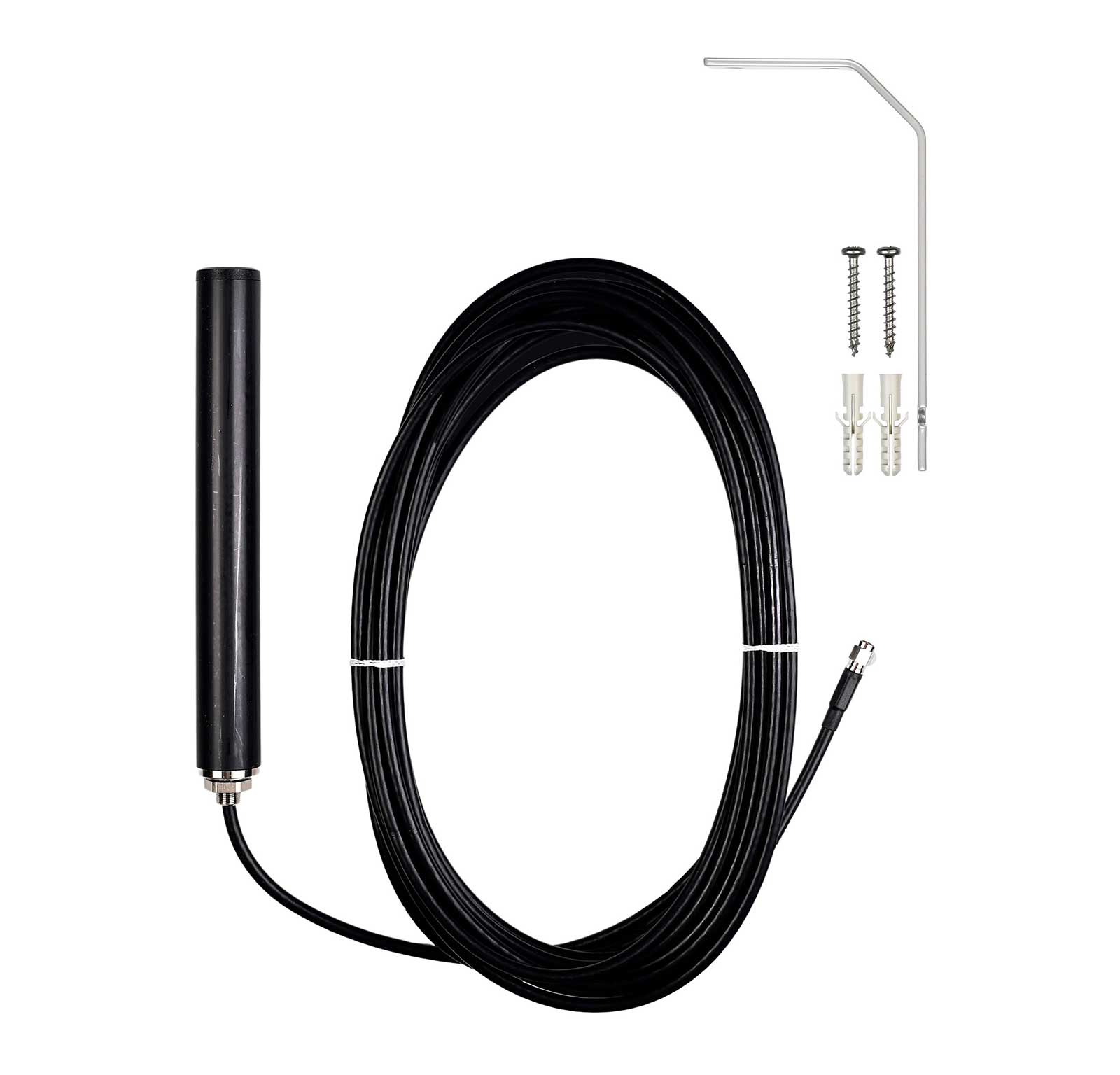 - HF-Kabel ist fest mit der Antenne verbunden