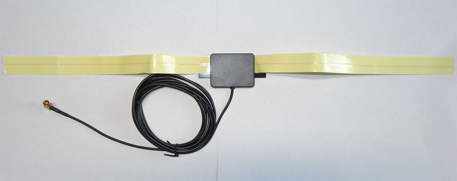 Glasklebeantenne für DAB-Empfang mit 3 m Anschlusskabel und SMB-Buchse