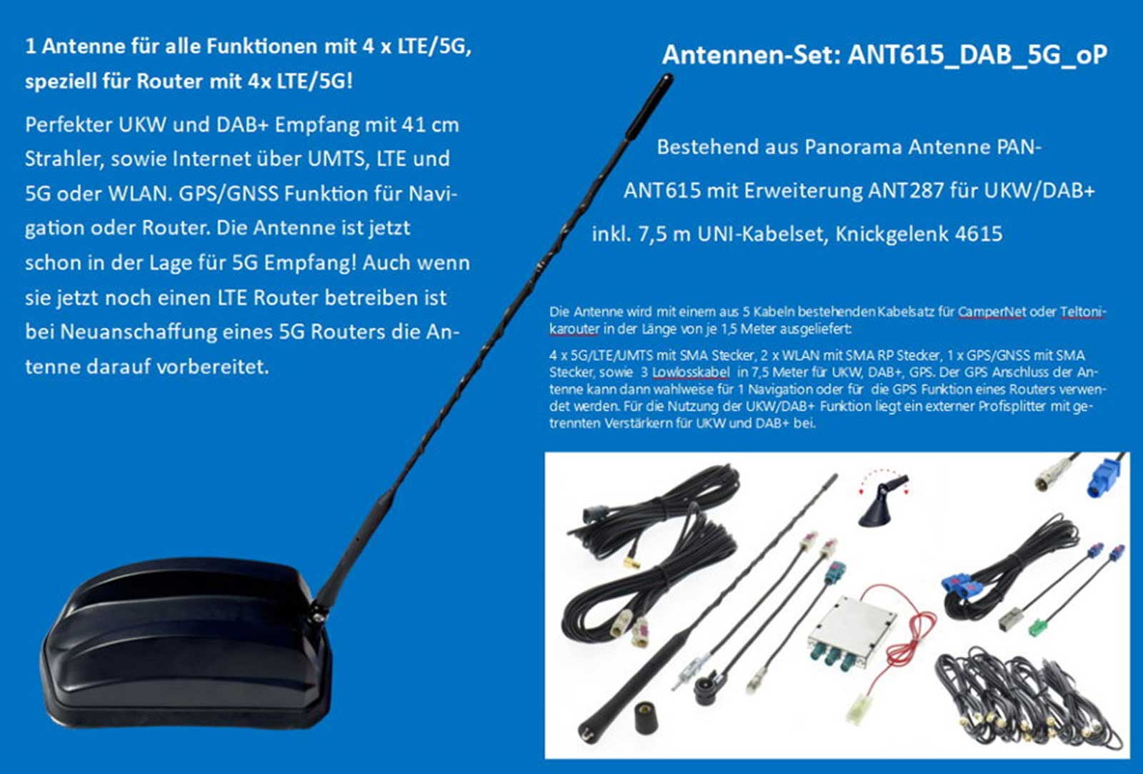Perfekter UKW und DAB+ Empfang mit 41 cm Strahler, sowie Internet über UMTS, LTE und 5G oder WLAN. GPS/GNSS Funktion für Navigation oder Router. Die Antenne ist jetzt schon in der Lage für 5G Empfang! Auch wenn sie jetzt noch einen LTE Router betreiben ist bei Neuanschaffung eines 5G Routers die Antenne darauf vorbereitet.