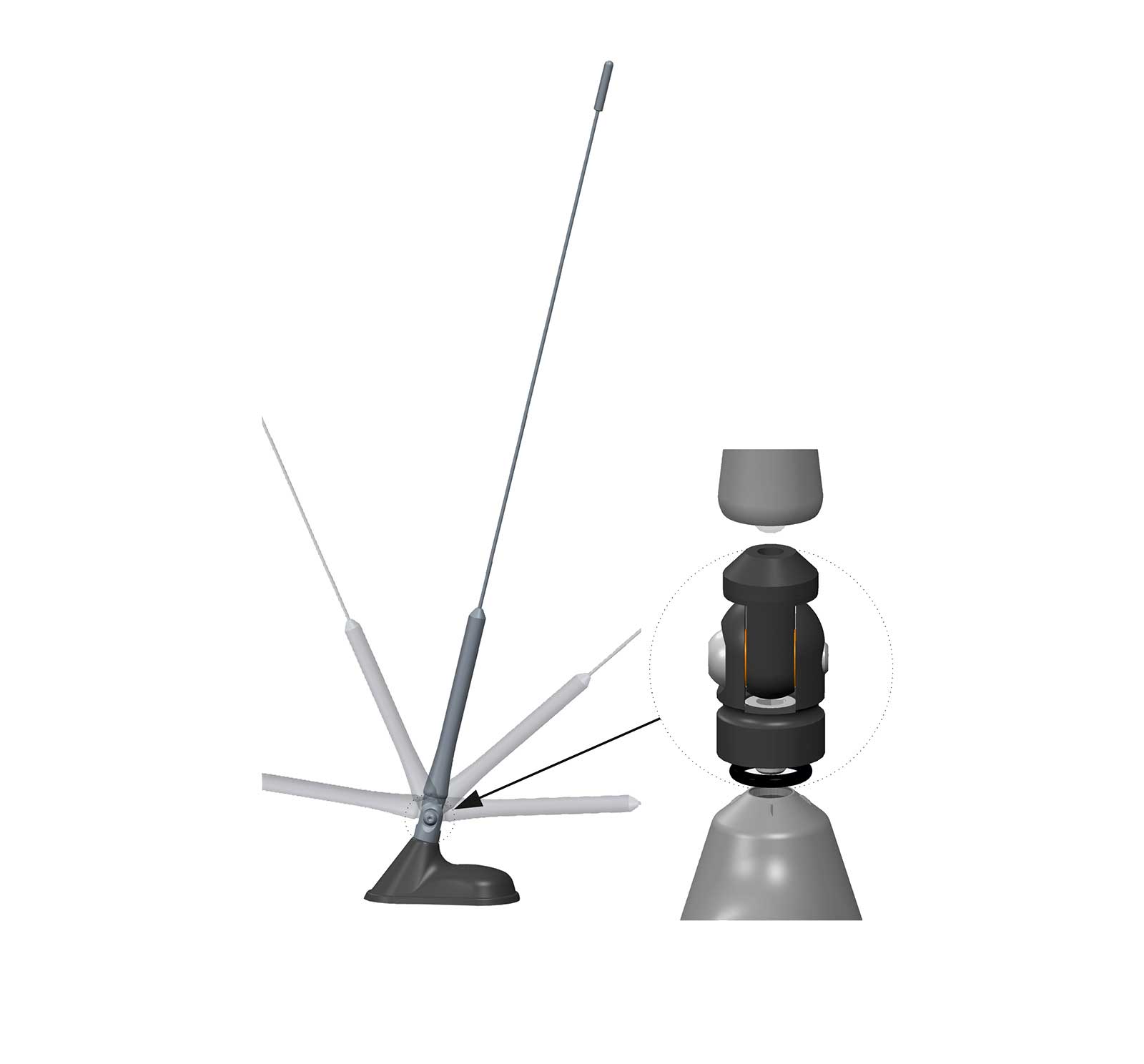 Die Besonderheit bei dieser Antenne ist, dass die Antenne über einen 6. Anschluss für Kombinationen aus UKW; DAB+ verfügt. Durch das mitgelieferte Strahler- / Verstärker- / Kabelkit kann dieser Anschluss für die genannten Funktionen genutzt werden. In diesem Fall muss die Antenne dann ein Gegenpol bekommen, d.h. auf Metall montiert werden.