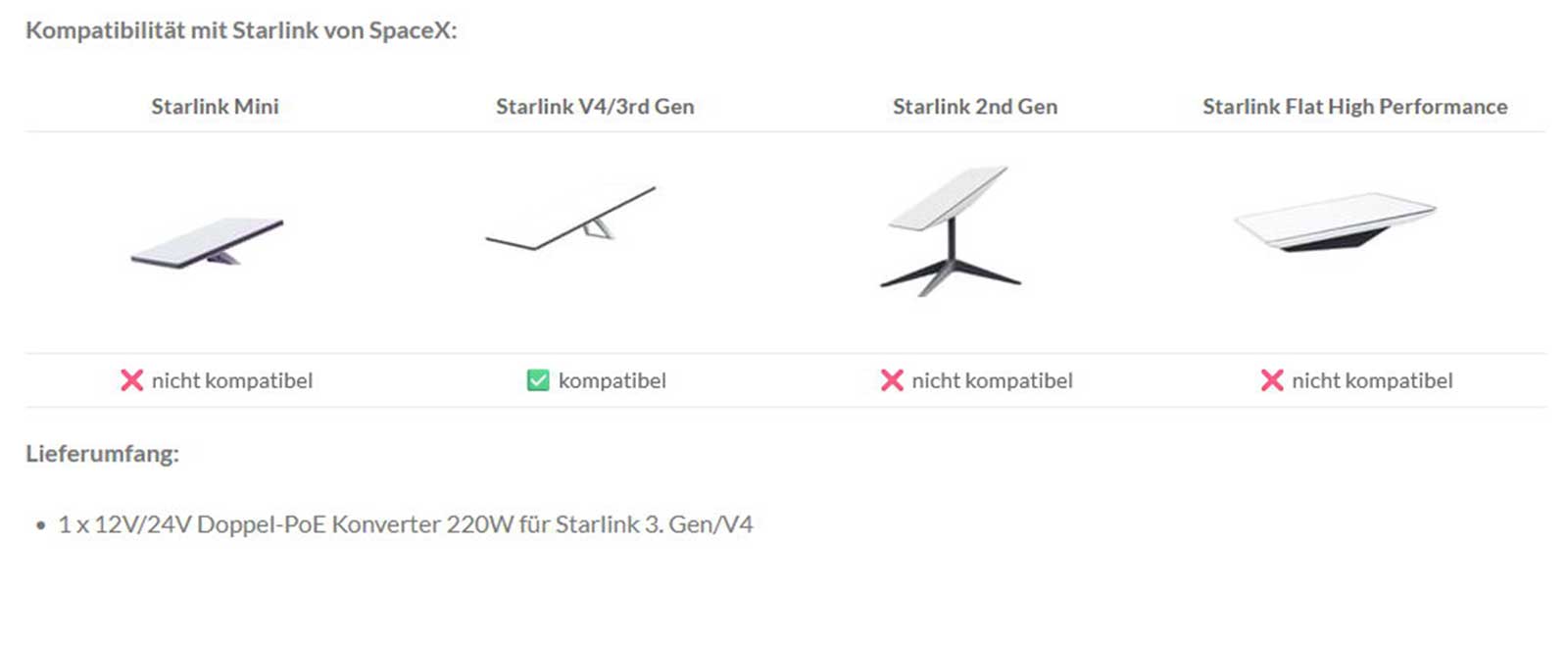 - Hinweis: Nur kompatibel mit Starlink 3. Gen./V4