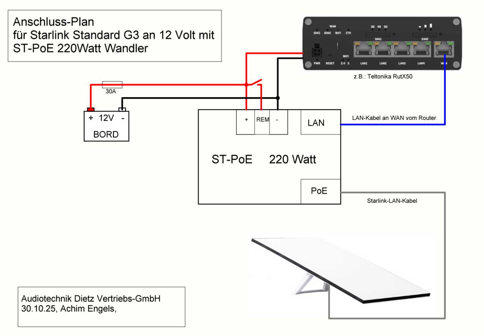 - 1x 12/24V Doppel-PoE-Konveerter 220W für Starlink 3. Gen./V4