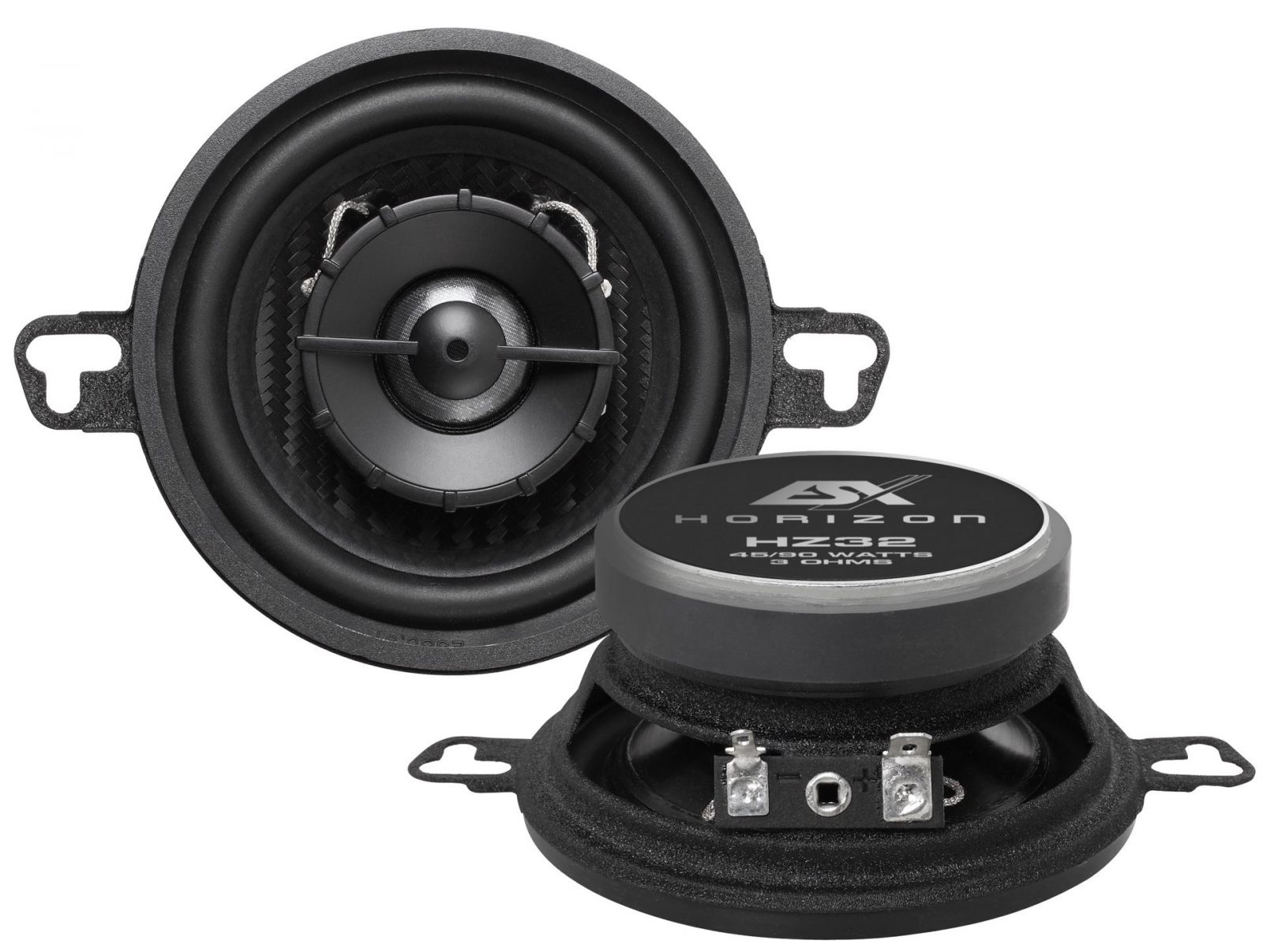 Die HORIZON Lautsprecher-Serie von ESX bietet in puncto Preis/Leistung ein optimales Verhältnis und setzt die Messlatte in dieser Preisklasse enorm hoch. HZ-Lautsprecher stehen für Qualität, Design und Performance gleichermaßen. Zur Verwendung kommt eine ultrasteife Polypropylen-Membran, die auch bei dauerhaft hohen Pegeln für akkurate und saubere Auslenkungen sorgt. Der kräftige Magnetantrieb der Lautsprecher ist mit einem starken Rubberboot optimal geschützt und sitzt stabil auf einem verstärkten resonanzarmen Stahlkorb. Edel dezente Schutzgitter runden jedes System perfekt ab. Die HORIZON Komponenten-Systeme und großen Koax/Triax-Modelle besitzen dank ihrer effizienten 3 Ohm-Schwingspule einen sehr hohen Wirkungsgrad. Dies bedeutet, dass selbst mit geringen Ausgangsleistungen eine sehr gute Klangperformance und hohe Lautstärke erreicht wird. Die bei den Systemen beiliegenden kompakten 12dB Kabelweichen finden überall ein Plätzchen und sind mit Hochtonschutz samt einer Pegelanpassung für den Hochton ausgestattet.