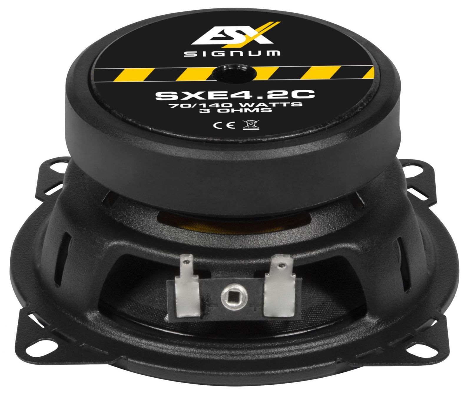 Die neuen SIGNUM SXE Lautsprecher sind die Lösung schlechthin, wenn wenig Platz für den Einbau vorhanden ist. Möglich machen dies die flach aufgebauten, verwindungssteifen Stahlkörbe, die dennoch einen erstaunlichen Hub wie bei weitaus tieferen Lautsprechern liefern. Die sehr leichten und mit speziellem Quarzsand beschichteten Papier-Membranen sorgen für einen hohen Wirkungsgrad, während die 20 mm Gewebehochtöner mit kompakten Einbaumaßen einen sehr linearen Frequenzgang im Zusammenspiel mit den Bässen bei 3 Ohm Impedanz wiedergeben. Die ebenfalls sehr kompakten Kabelfrequenzweichen - jeweils Hochtöner und Bass getrennt (außer bei SXE4.2C) - sind überall leicht zu integrieren.