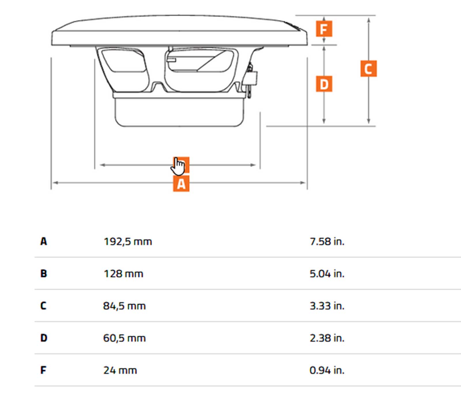 - Tieftöner: 85 x 32 x 15 mm