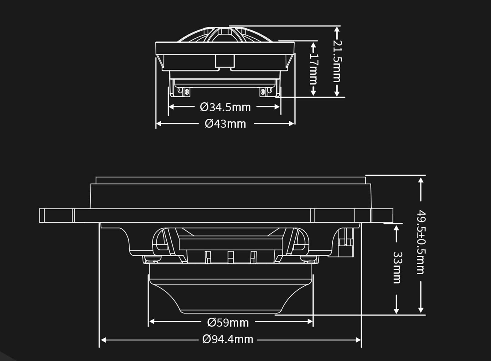 - 100 mm Mitteltöner Membran aus resonanzarmen Glasfaserlaminat und Gummisicke
