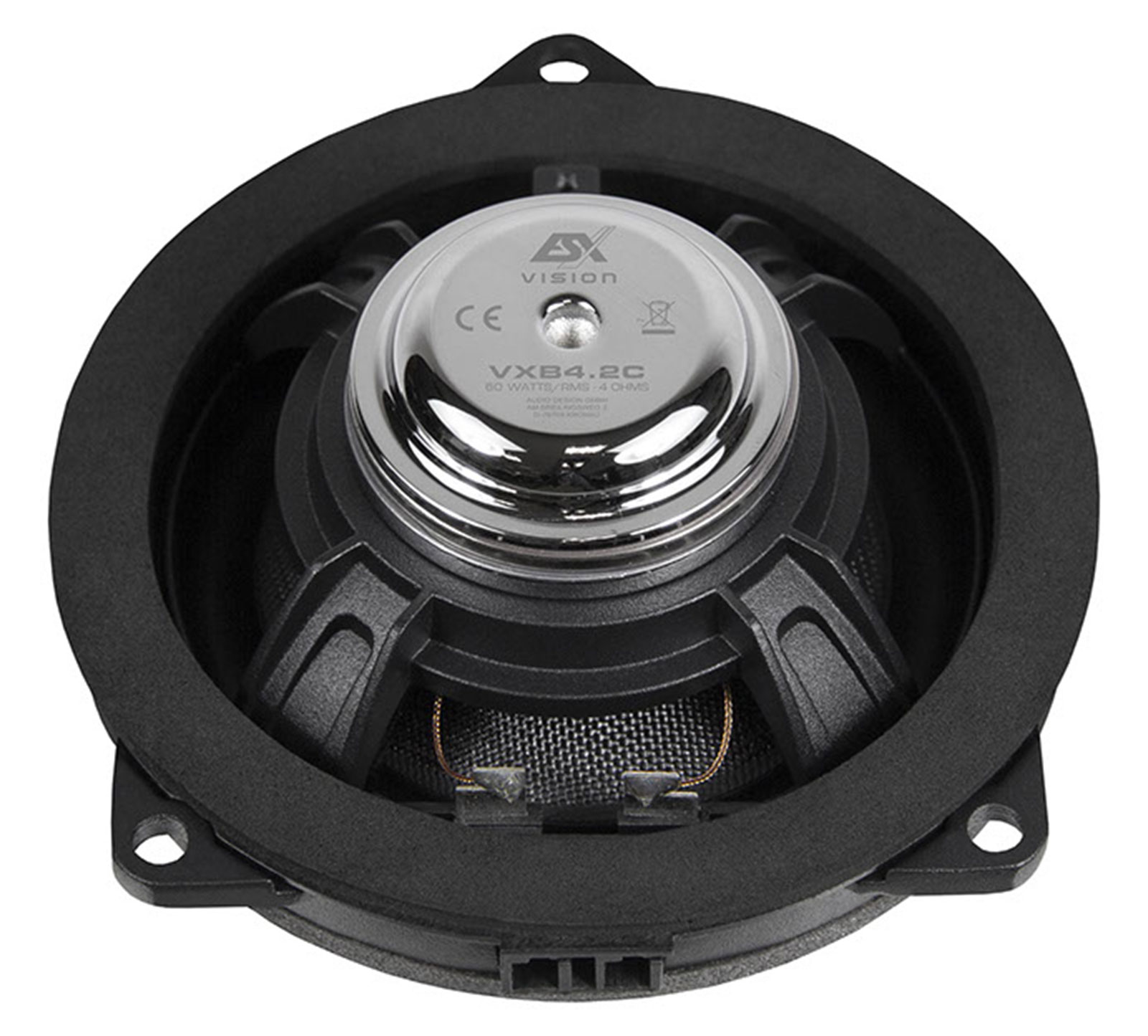 Neben den unglaublich guten Mittel- und Hochton Lautsprechern ist ganz klar das VXB Subwoofer-Duo zu nennen. Mit den großen 51 mm Schwingspulen, einer Belastbarkeit von 180 Watt RMS an 2 Ohm und einer speziell auf hohe Pegel ausgelegte Kevlar-Verbundmembran, welche mit einem speziellem Schaumstoff aus Deutschland "verbacken" wird, bringen die Subwoofer die Hosenbeine zum Flattern. Viele handelsübliche Nachrüst-Bässe für BMW sind zwar zu hören, aber nicht so wie die ESX Tieftöner auch zu spüren! Eine Freude für all diejenigen, denen ein pfundiges Bassbrett bisher gefehlt hat.