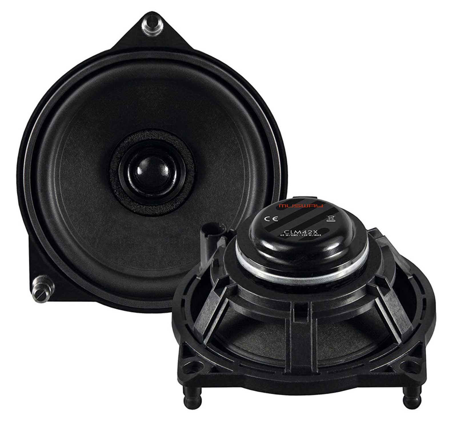 Budgetfreundlich und etwas unterhalb der preisgekrönten CSM-Modellen angesiedelt, sind die MUSWAY CLM-Lautsprecher eine interessante Alternative, um in Mercedes-Benz Fahrzeugen der C-, GLC- oder E-Klasse den Sound ab Werk nachträglich und einfach zu verbessern. Alle CLM 10 cm Modelle besitzen sehr kräftige Neodym-Antriebe, die im Zusammenspiel mit der kleinen bewegten Masse der federleichten Membranen einen sehr guten Wirkungsgrad und einen hohen Schalldruck erzielen. Die 25 mm Gewebe-Hochtöner warten sogar mit noch stärkeren N52 Neodym-Antrieben und CCAW Alu-Kupferdraht Schwingspulen auf, die für eine extrem gute Impulsfreudigkeit und hohe Detailtreue sorgen. Auch im Koax-Lautsprecher CLM42X arbeitet ein feiner Gewebehochtöner, der mit seinen 16 mm sehr tief im Lautsprecher eingebaut werden konnte. So aufgebaut kommt er einer Punktschallquelle nahe, was eine wesentliche Klangverbesserung zur Folge hat.
