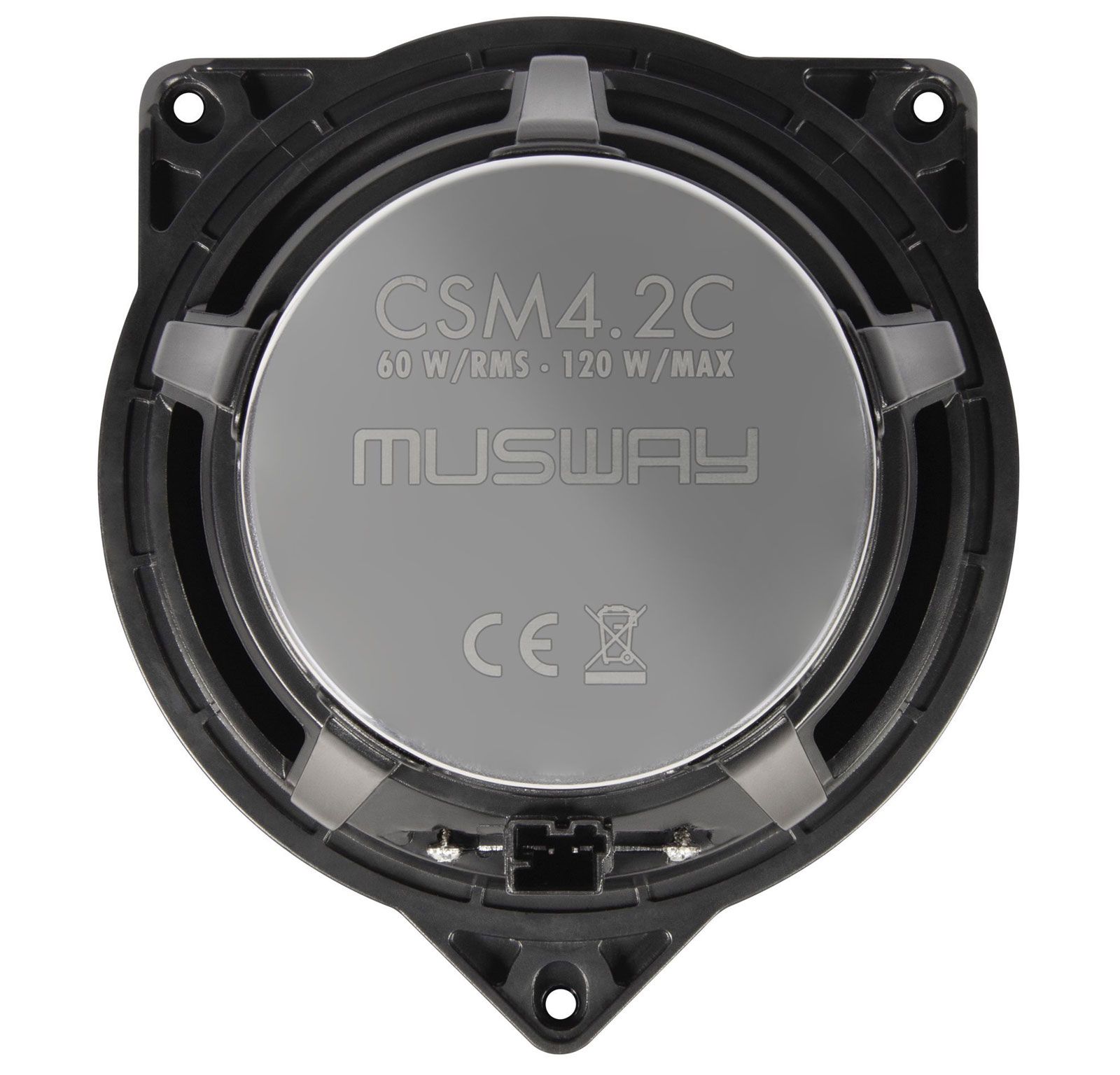 Bei den neuen CSM Lautsprechern für Mercedes-Benz Fahrzeuge stand während der Entwicklung ebenfalls eine deutliche Verbesserung des Klangs und eine höhere Belastbarkeit im Vergleich zu den Originalsystemen im Vordergrund. Superleichte Glasfaser-Membranen und effiziente Neodym-Magnet-Antriebe sorgen auch bei den CSM Modellen schon bei geringer Verstärkerleistung für wirkungsgradstarke Soundperformance. Bei den 20 cm Basslautsprechern wird dank der effizienten 38 mm CCAW Schwingspulen ein Schalldruck von stolzen 89 dB/W/m generiert. Die 10 cm Lautsprecher sind hingegen mit nicht gerade kleineren 30 mm CCAW Schwingspulen bestückt, die ebenfalls für grandiose Klangerlebnisse sorgen. Der 25 mm Titan-Hochtöner CSM1T (auch bei CSM4.2C enthalten) mit Neodym-Magnet Antrieb überzeugt mit linearem Frequenzgang bis über 20 kHz und kristallklaren Höhen.