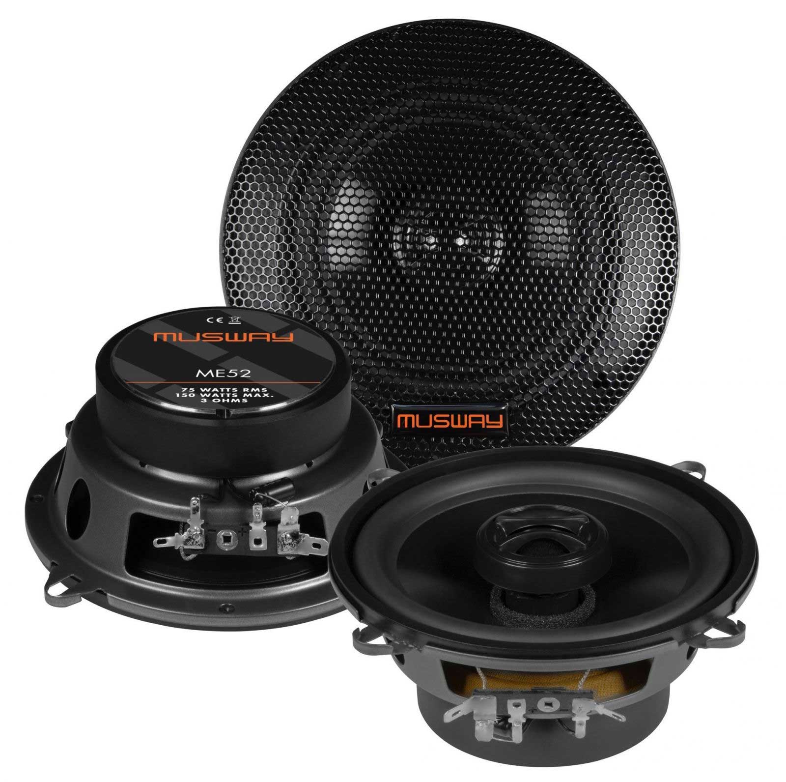 Die ME Lautsprecher sind die Einstiegsmodelle von MUSWAY. Selbst diese sind schon mit kräftigen Magnetantrieben ausgestattet, die unter anderem eine hohe Belastbarkeit mit bis zu 200 Watt Musikleistung ermöglichen. Polypropylen-Membranen mit Gummisicken garantieren einen tiefen und kräftigen Bass und eine sehr hohe Langlebigkeit. Für ein optimales Abstrahlverhalten wurden in die Basslautsprecher von ME6.2C, ME5.2C und ME6.2W Phase-Plugs eingesetzt. Der 25 mm Gewebe-Neodym-Hochtöner hat nicht nur hervorragende Klangeigenschaften, sondern ist auch noch besonders flexibel einsetzbar, da der äußere Plastikring abnehmbar ist und sich dadurch der Durchmesser auf kompakte 43,5 mm verringert - passend für das Spiegeldreieck oder die A-Säule. Für einfache Verbaubarkeit sorgen die für den Hochton- und Basszweig getrennten Inline-Frequenzweichen, die kaum Platz beanspruchen.
