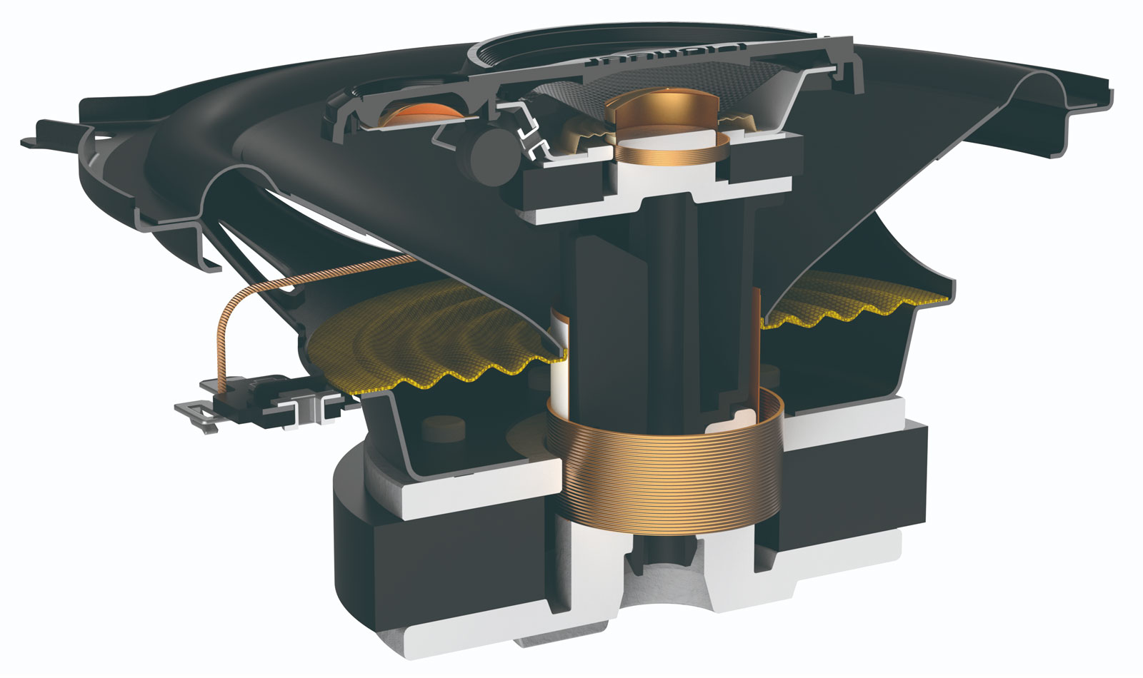 Basswiedergabe und der Hochfrequenzen und beinhaltet gleichzeitig das berühmte