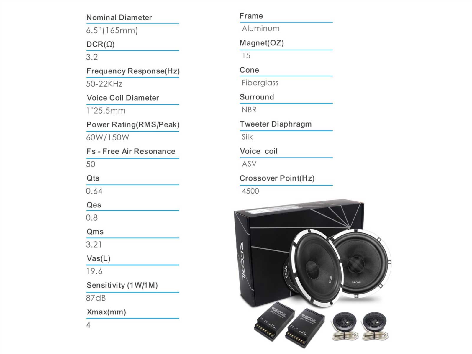 16,5 cm 2 Wege Komponenten-Lautsprecher mit 160 Watt (RMS: 80 Watt)