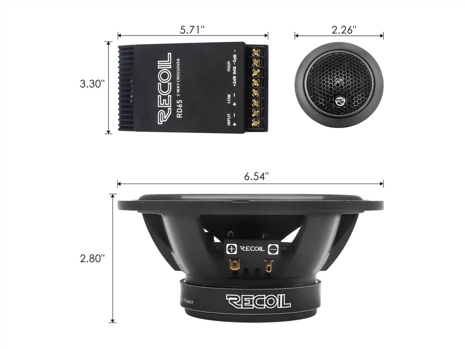 Die Frequenzweichen sind mit hochwertigen Mylar-Kondensatoren und segmentierten Luftspulen bestückt und lassen sich durch ihre kompakten Maße leicht verbauen.