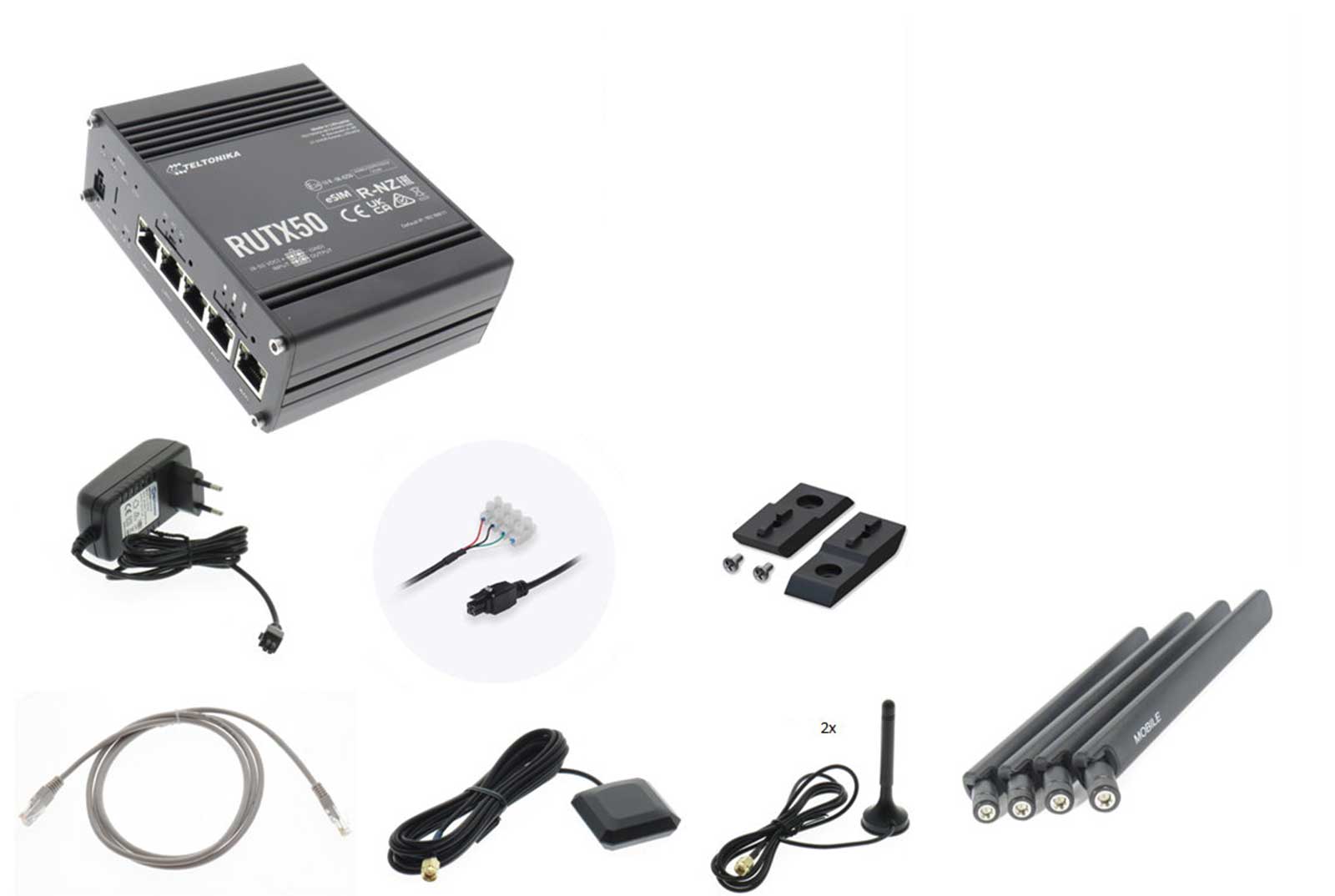Neuheit, Modell 2025 mit e-SIM Der RUTX50 ist ein zukunftssicherer Multinetzwerk-Industrierouter, der 5G-Mobilkommunikation für Hochgeschwindigkeits- und datenintensive Anwendungen bietet.