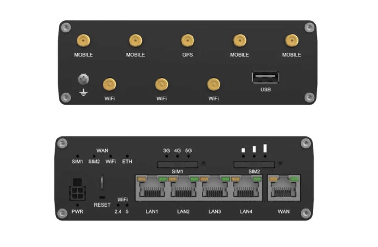 Was die Schnittstellen betrifft, so verfügt der RUTC50 über fünf Gigabit-RJ45-Ports, einen digitalen Input, einen digitalen Output und einen USB-A-Port. Letzterer kann als Ersatz für einen seriellen Port verwendet werden, um ältere Geräte anzuschließen, so dass der Router die Konnektivität der Zukunft mit den Geräten der Vergangenheit verbinden kann.
