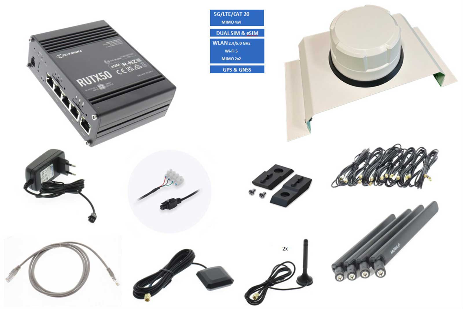 - Teltonika 5G Router RUTX50B mit Originalzubehör
