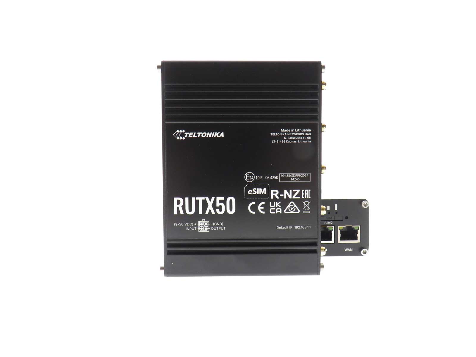 Der RUTX50 ist ein zukunftssicherer Multinetzwerk-Industrierouter, der 5G-Mobilkommunikation für Hochgeschwindigkeits- und datenintensive Anwendungen bietet.