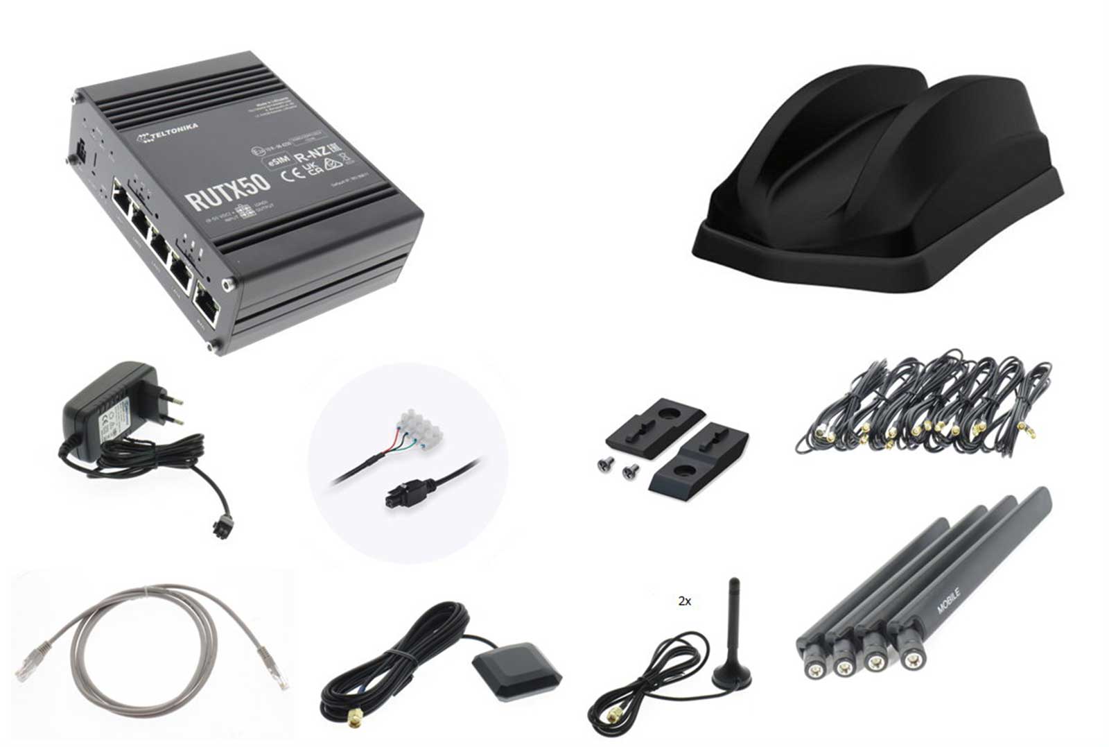 - Teltonika 5G Router RUTX50B mit Originalzubehör, siehe weiter unten