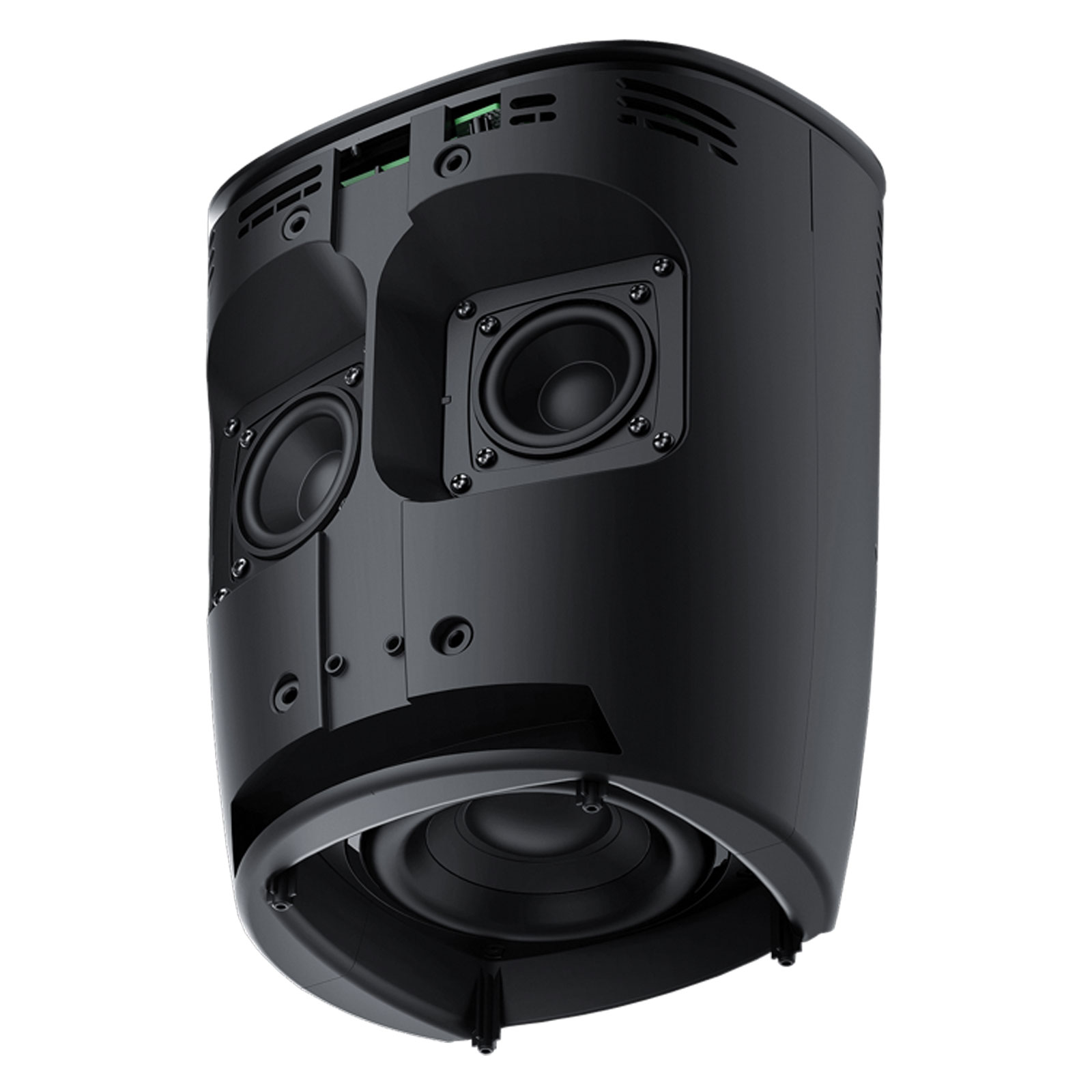 Zwei 50mm-Breitbandlautsprecher mit aktivem 100mm-Downfire-Subwoofer und