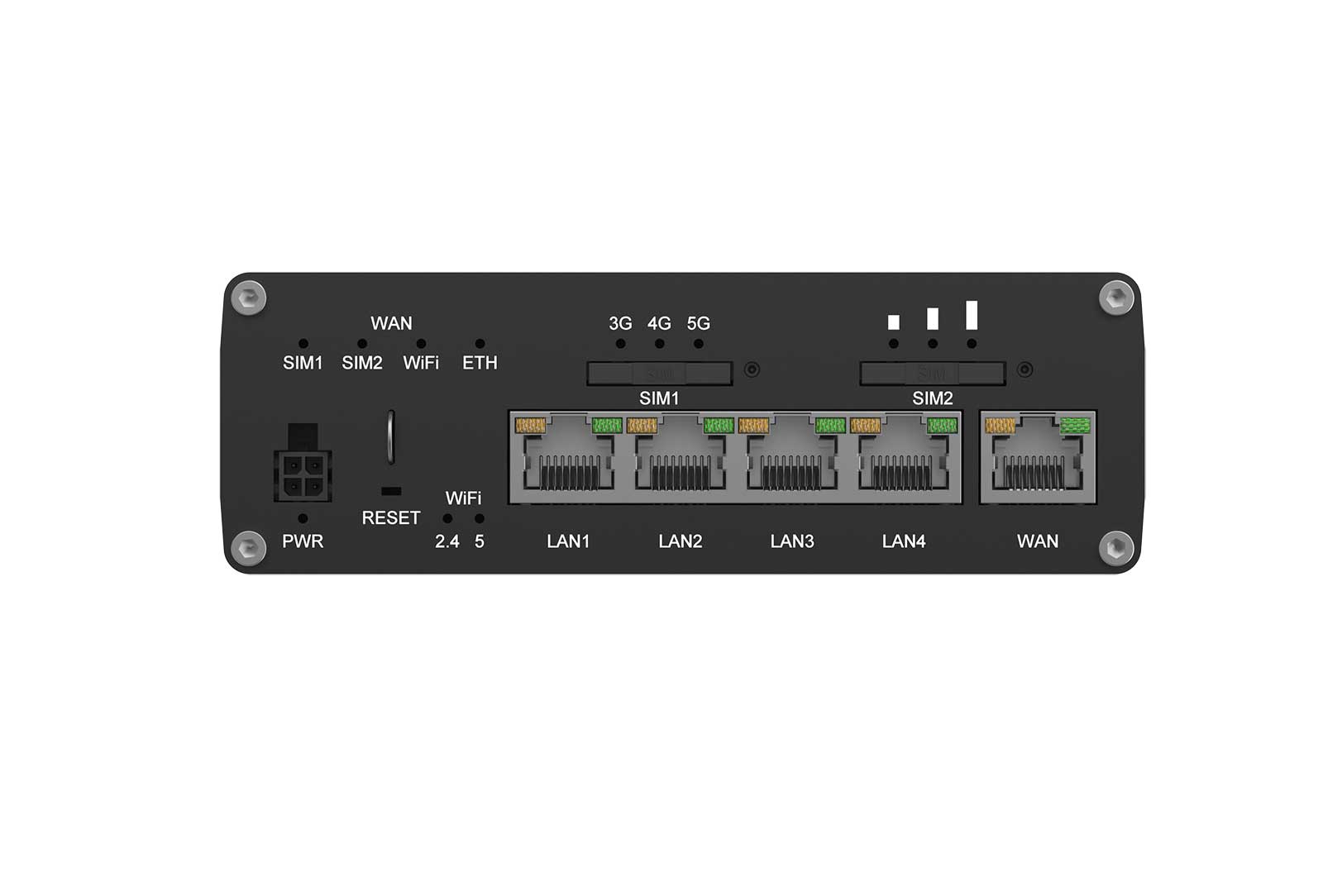 Was die Schnittstellen betrifft, so verfügt der RUTC50 über fünf Gigabit-RJ45-Ports, einen digitalen Input, einen digitalen Output und einen USB-A-Port. Letzterer kann als Ersatz für einen seriellen Port verwendet werden, um ältere Geräte anzuschließen, so dass der Router die Konnektivität der Zukunft mit den Geräten der Vergangenheit verbinden kann.