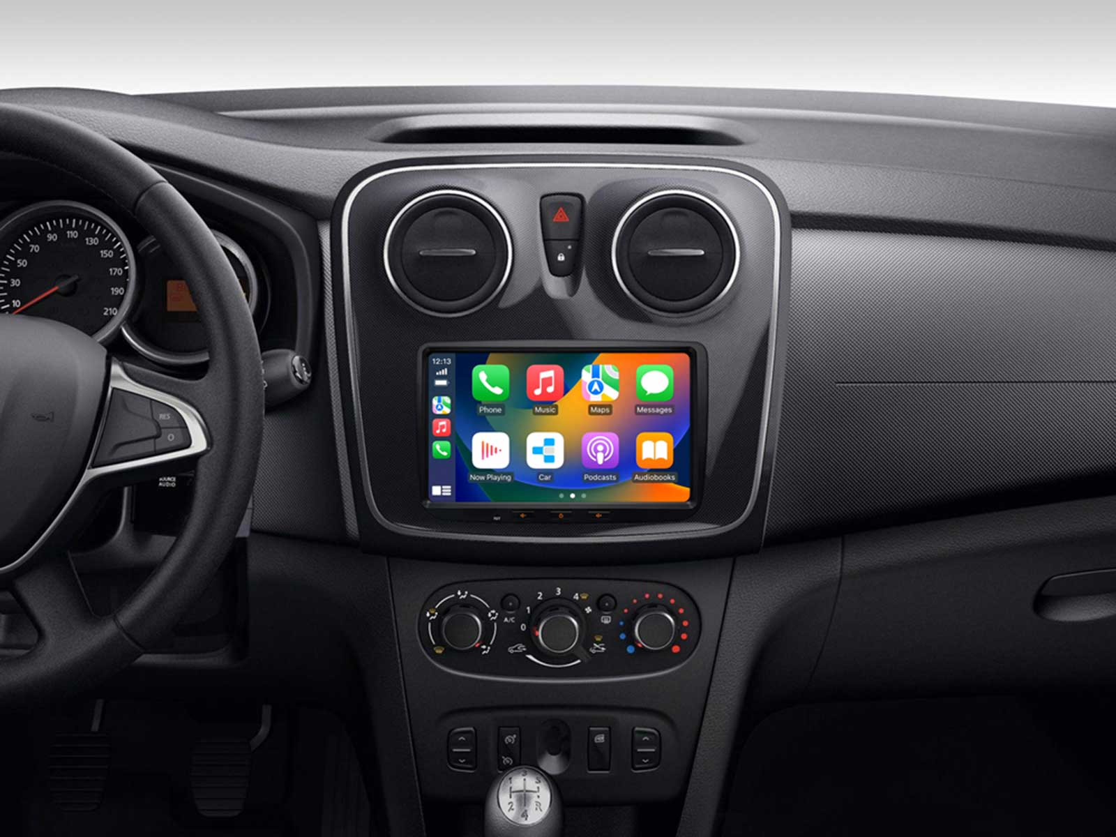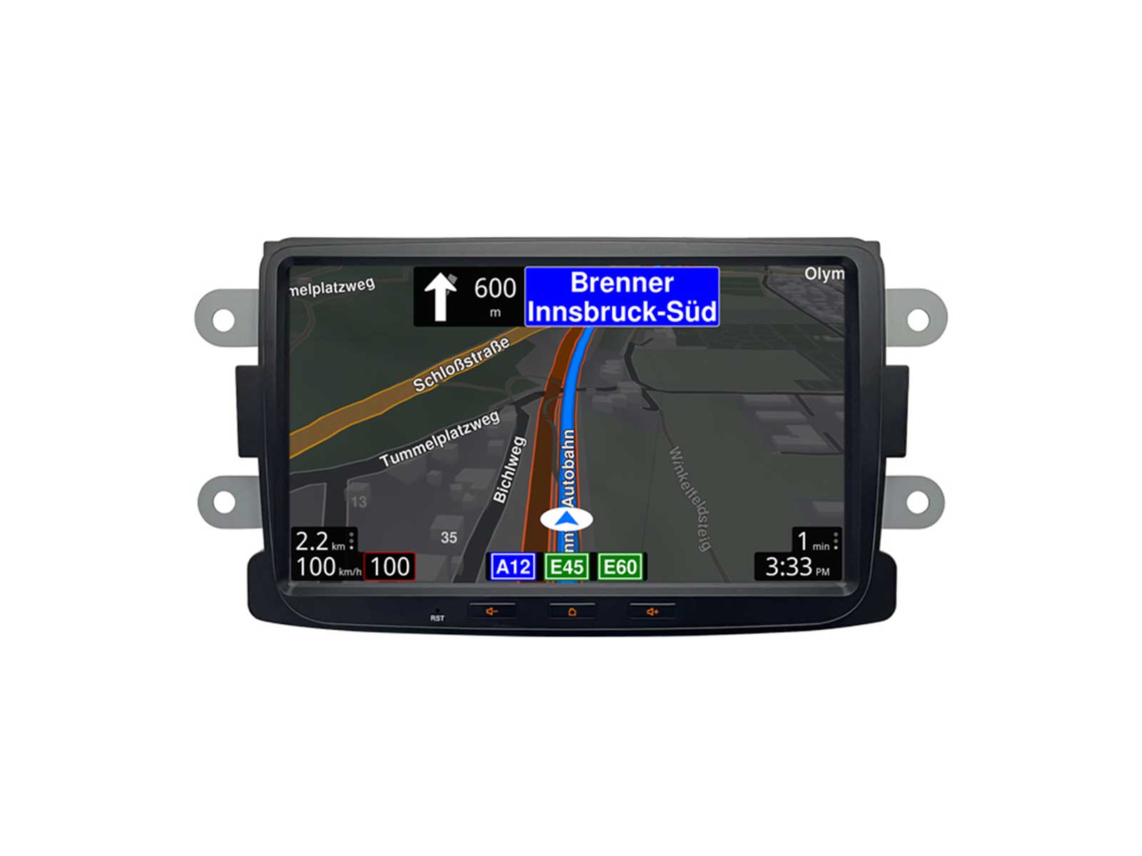 Android Autoradio für Dacia Sandero / Duster / Renault Captur mit 4 x 100W Class-D Verstärker, 8 Zoll Display (hochauflösend), Inkl. Head-up-Display, Apple CarPlay und Android Auto