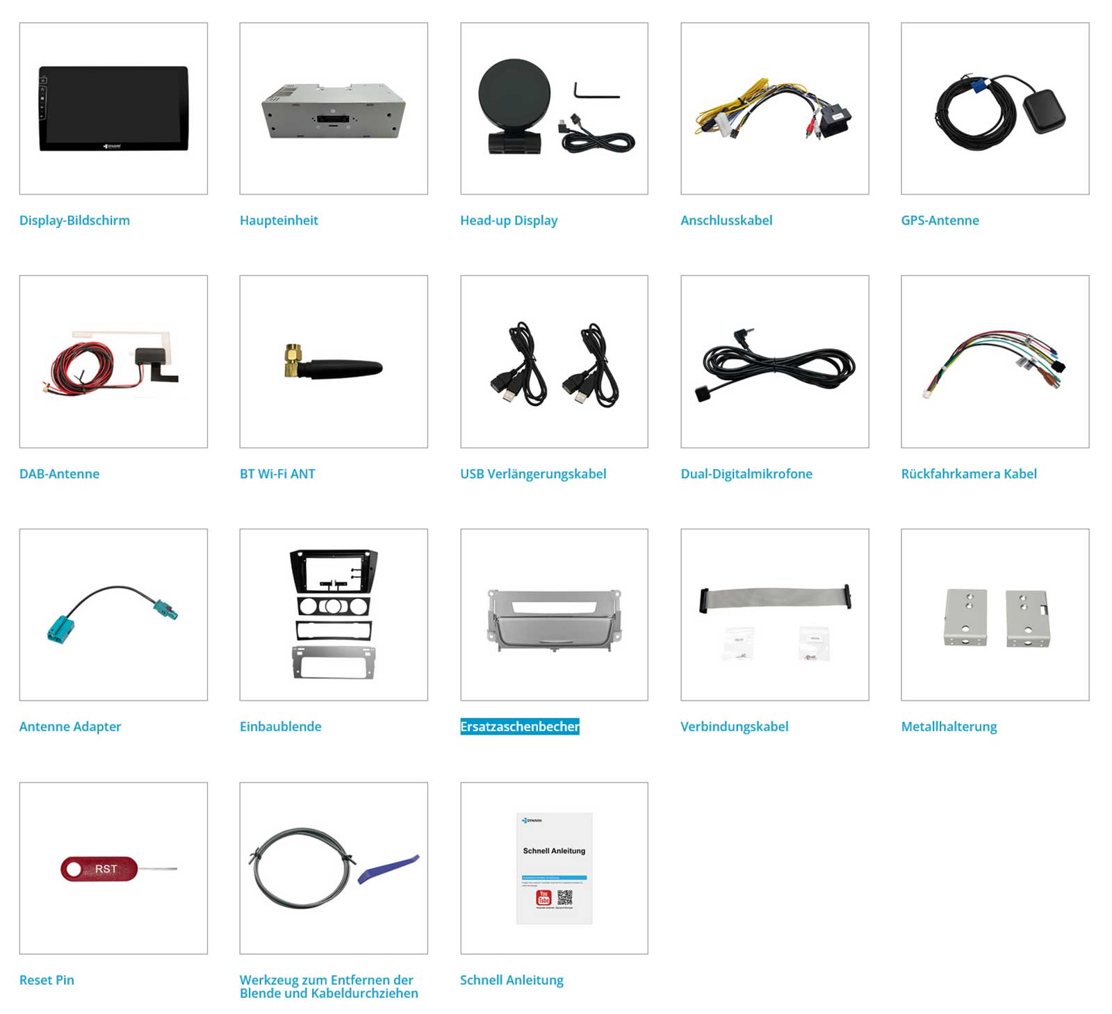 Das Dynavin E90 wird standardmäßig mit einem silbernen Aschenbecher ausgeliefert. Falls Sie einen in schwarz benötigen, muss dieser separat erworben werde DVN 100B.