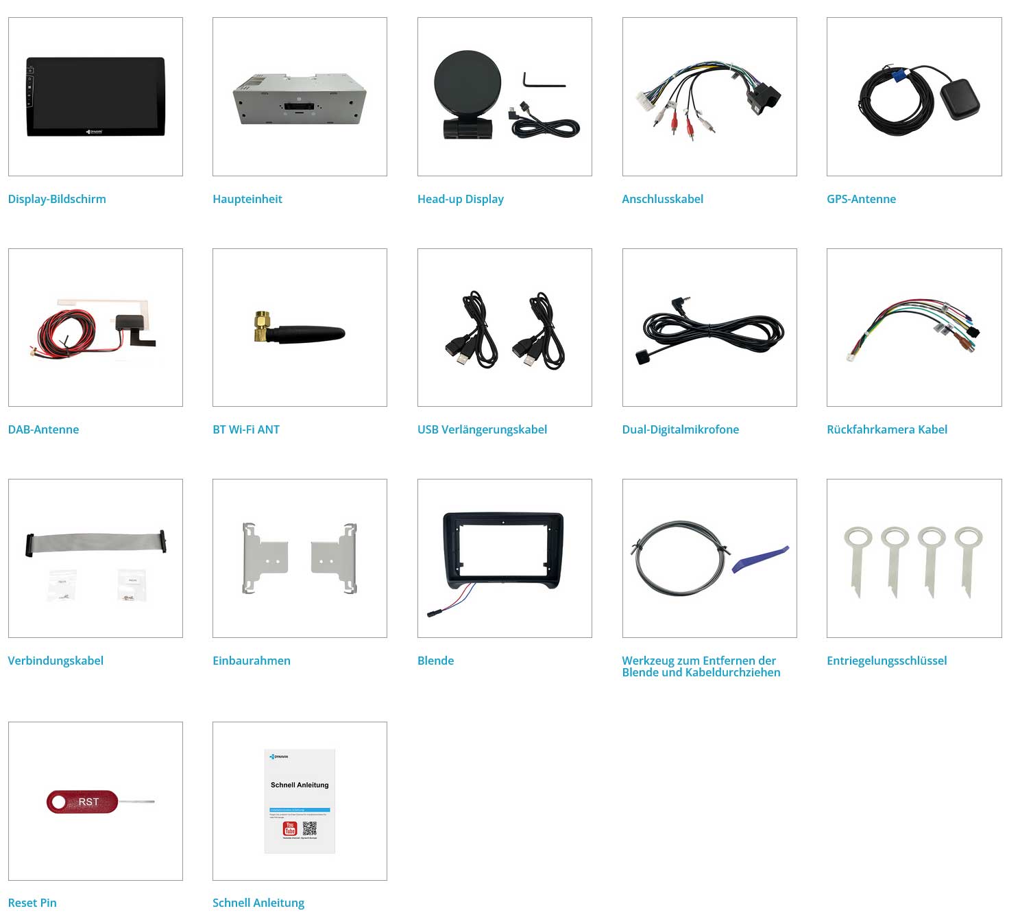 Inklusive Head-up-Display, das Navigationsinformationen von Dynaway, Apple Karte mit Carplay und Google Karte mit Android Auto auch die Fahrzeuggeschwindigkeit und Blitzer-Informationen an.