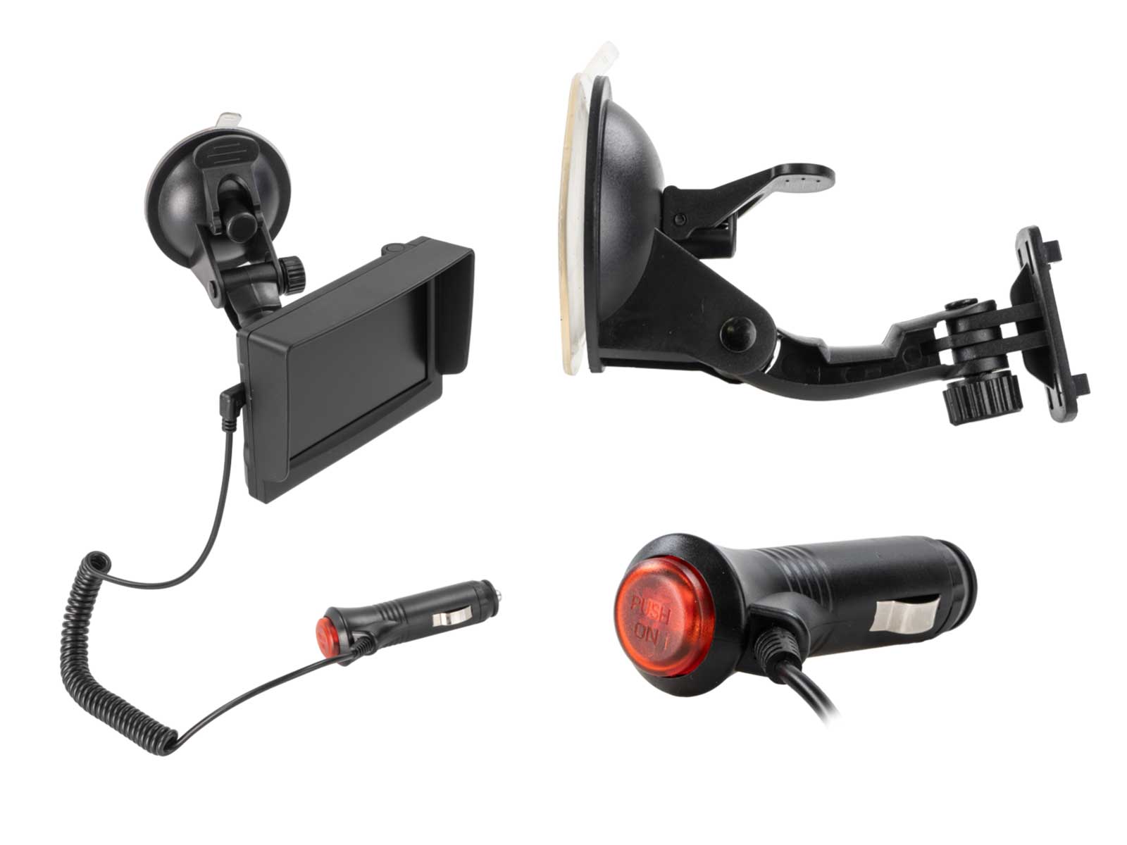 - Monitor universal: 4,3" / Video Empfänger analog / Zigarettenanzünderanschluss / Patenthalter / Saugnapffuß