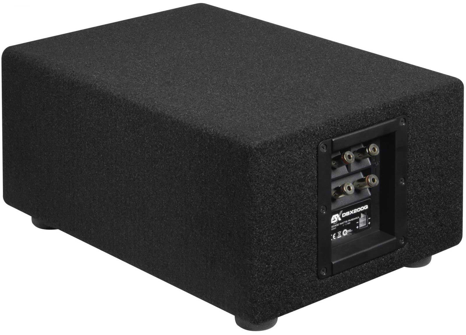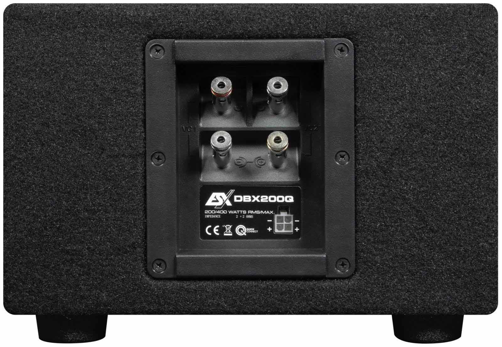Das sehr kompakte DBX200Q System kann auch in allen anderen Fahrzeugen als Nachrüstbox universell eingesetzt werden. Speziell durch das sogenannte "Downfire"-Prinzip, also der Abstrahlung des Subwoofers nach unten, erzeugt er sehr kraftvolle Bässe, da hohe Töne eliminiert werden. Ein optisches Highlight setzt die Box mit edlem Acrylglas und dem ESX-Logo, der Tieftöner selbst ist durch ein stabiles Gitter geschützt.
