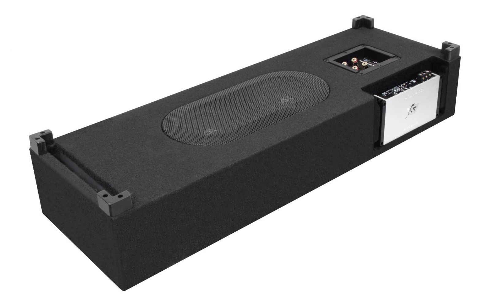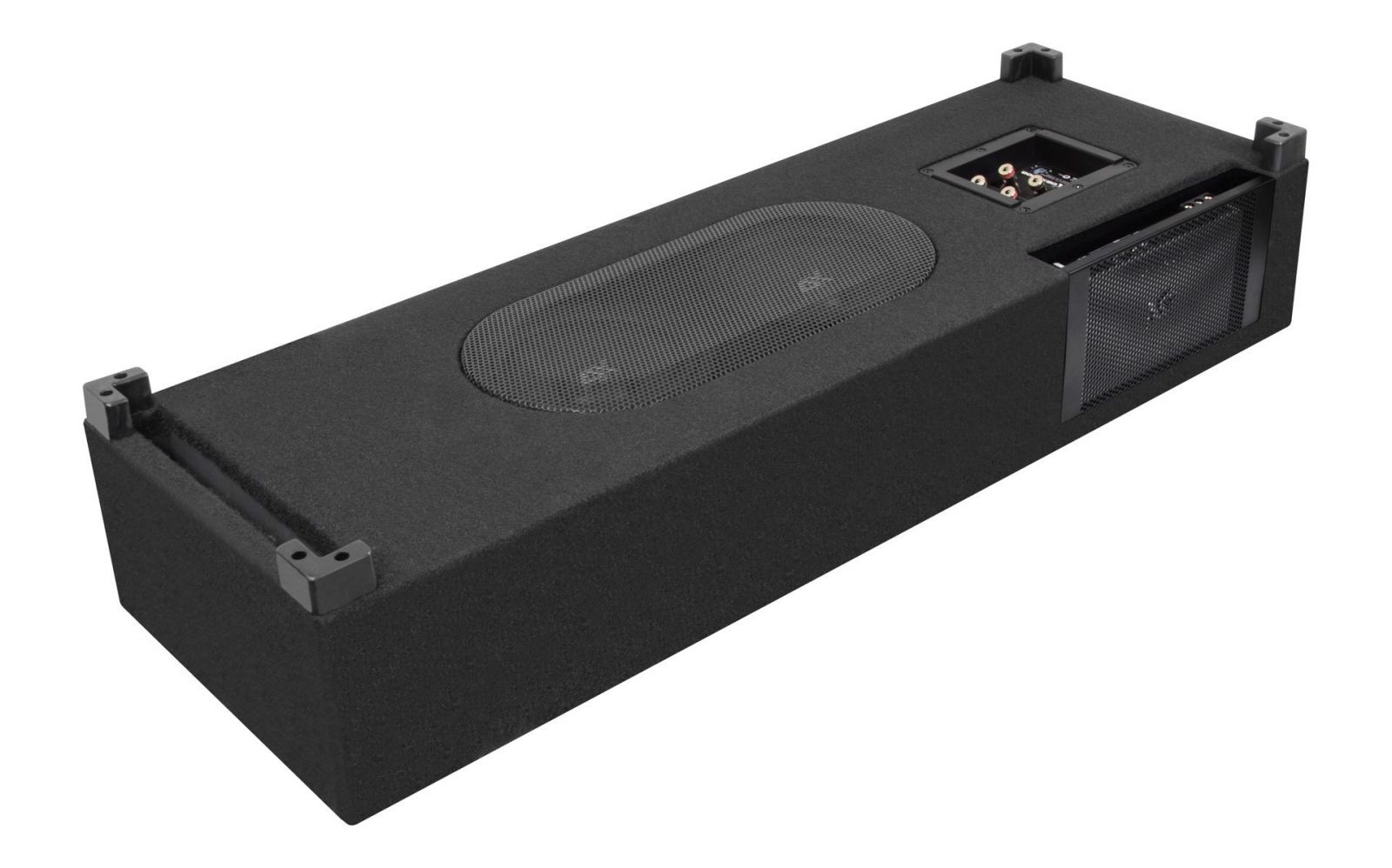 Die neuen DBX Modelle eint nicht nur die Besonderheit, dass sie durch die üppige Bestückung mit gleich zwei Subwoofern enorm viel Bass liefern, sondern man kann sie dank ihrer Konstruktion auch als Problemlöser bezeichnen, da sie keinen oder nur wenig Platz im Kofferraum beanspruchen. Ein weiterer Clou ist, dass sie entweder passiv oder sehr einfach durch den Einbau eines ESX QM Verstärkers in eine dafür speziell vorgesehene Aussparung auf aktiven Betrieb umgerüstet werden können. Die Idee spart nochmals Platz und sieht obendrein auch noch sehr schickt aus. Die Subwoofer des DBX600Q Modells sind nicht mit in dieser Klasse üblichen 25 mm, sondern gar mit 38 mm großen Schwingspulen ausgestattet, welche dadurch sehr hohen Belastungen standhalten. Das DBX600Q System kann entweder im Kofferraum liegend platziert werden, oder, falls vorhanden, in einem doppelten Kofferraumboden. Um die Einbauhöhe zu reduzieren, kann man die Montagefüße abnehmen und die Box drehen. Alle Modelle der DBX Serie sind mit einem QUICK CONNECT Anschlussterminal ausgestattet, mit dem der Anschluss per Molex-Steckverbindung im Handumdrehen zu bewerkstelligen ist. Zusätzlich bietet das neu entwickelte Multi-Terminal auch die Möglichkeit, via Push-Pin handelsübliche Verstärker anzuschließen. Die beiden DBX Gehäuse-Subwoofer kann man als echte Problemlöser bezeichnen. Die DBX600Q macht sich als moderne Downfire Box imKofferraum fast unbemerkbar, während die DBX800Q perfekt für eine Reserveradmulde geeignet ist. Der Clou an beiden Boxen: Beide habenein extra Fach, um eine der drei kompakten QM Verstärker zu integrieren. Somit kann z.B. die Kombination aus DBX800Q und der 4 Kanal QM400.4 eine komplette Anlage befeuern, und dies quasi unsichtbar.