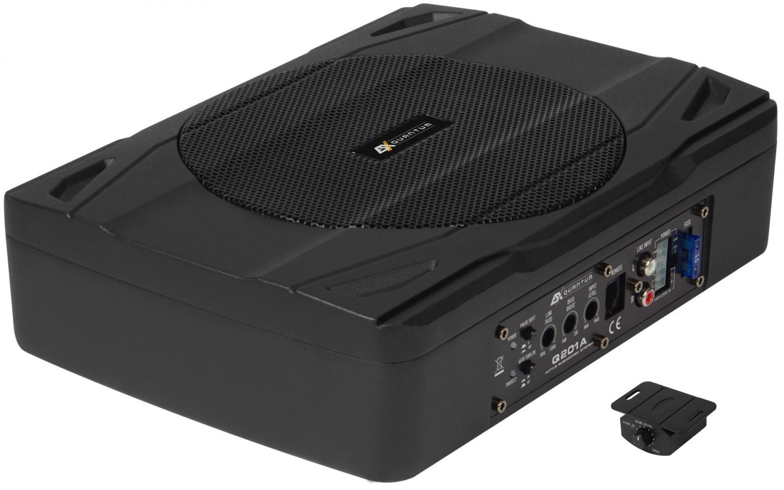 Das neue und sehr schlank aufgebaute Q201A System und das mit etwas mehr Volumen ausgestattete Q202A sind mit integriertem 20 cm Spezialwoofer und echtem Class A/B Verstärker ausgestattet. Beide besitzen einen aus Aluguss bestehenden Kühlkörper mit hervorragenden Kühleigenschaften, welcher den integrierten Verstärker bestens kühlt. Optimal für Kleinwagen, Sportcoupés und Cabrios, finden die beiden Aktiv-Woofer überall einen Platz, sei es unter oder hinter dem Sitz oder in einem Staufach im Kofferraum.