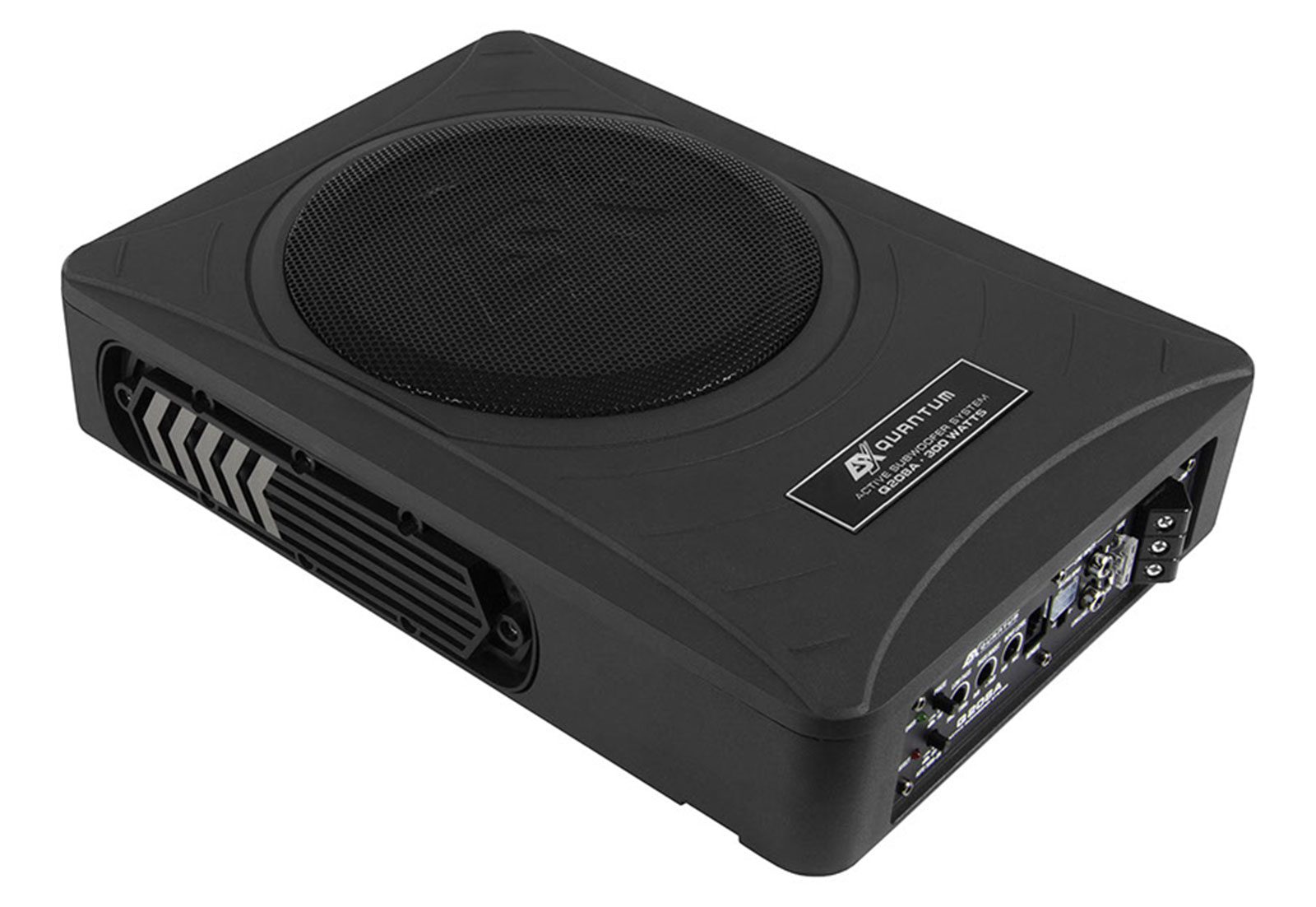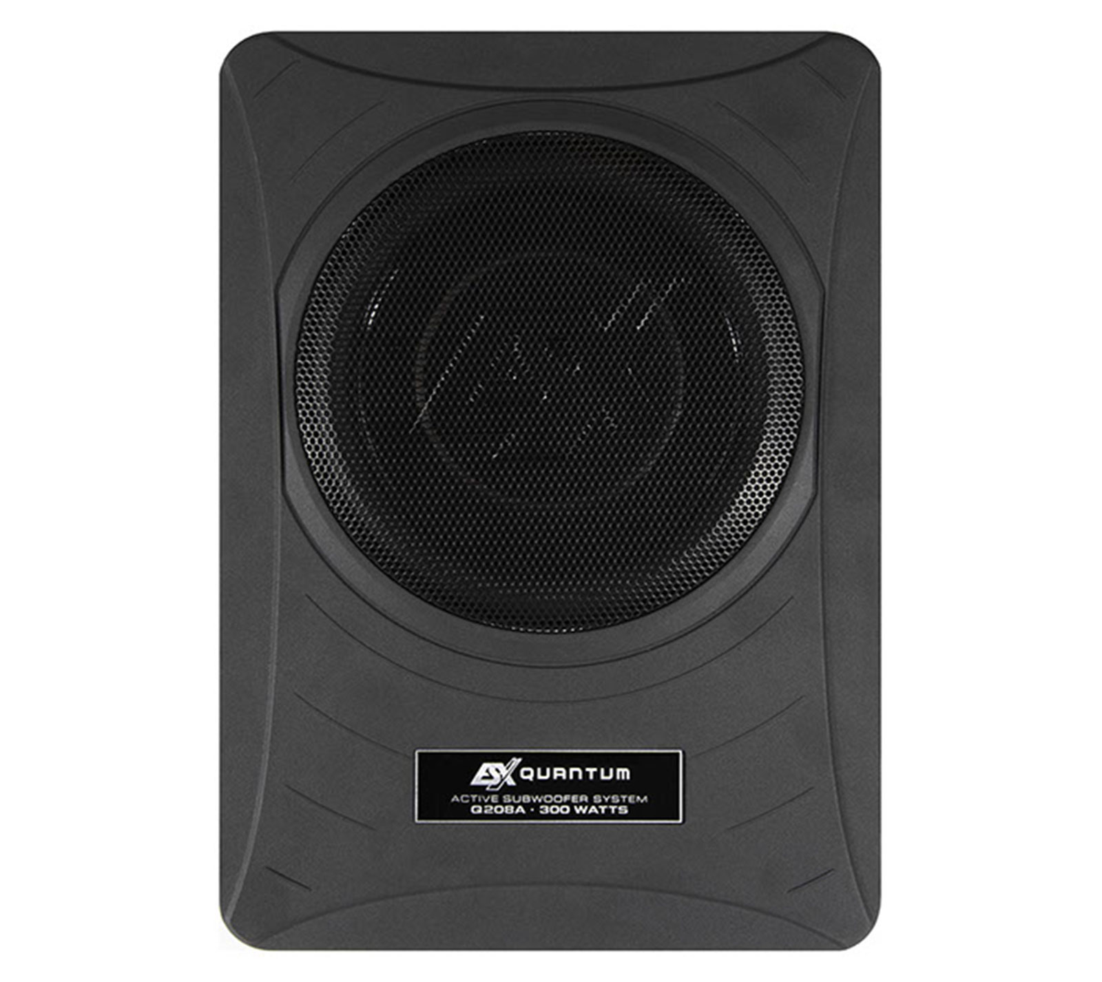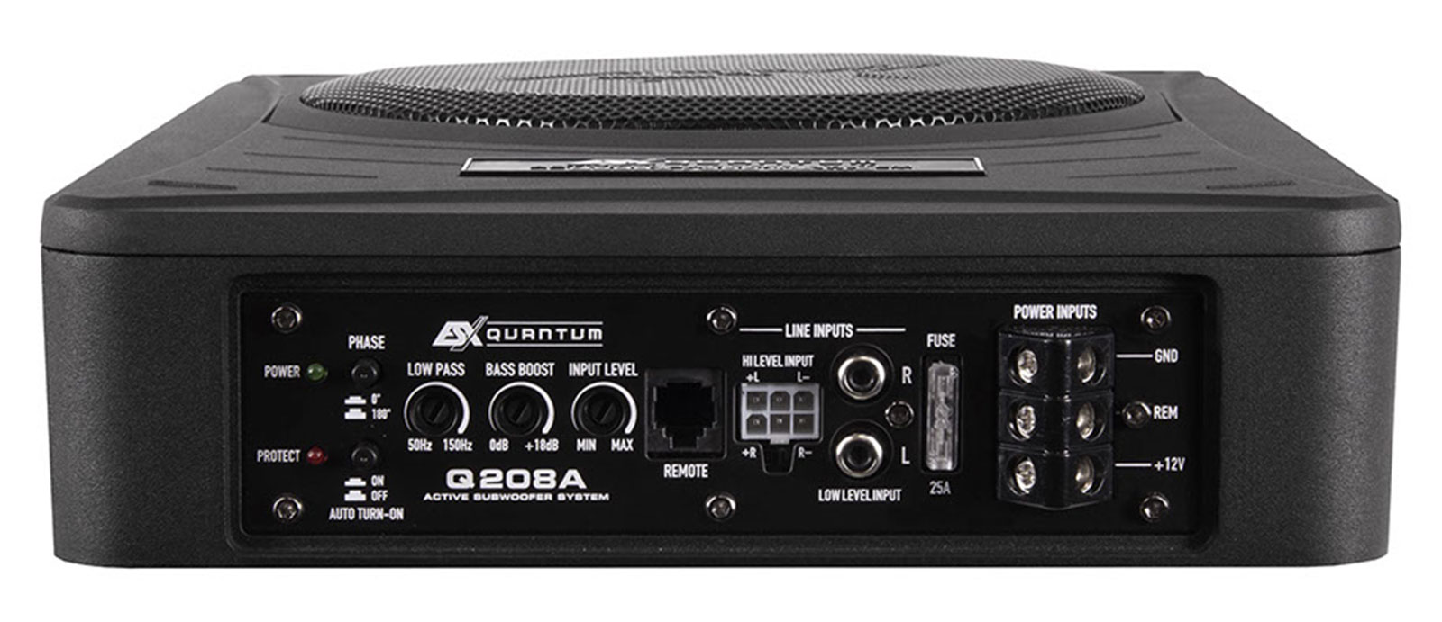 Der legendäre QUANTUM Q202A Aktiv-Untersitz-Subwoofer bekommt mit dem neuen und verbesserten Q208A einen würdigen Nachfolger. Geblieben sind die kompakten Abmessungen, damit er auch weiterhin unter vielen Fahrzeugsitzen sein Plätzchen findet. Mit stolzen 150 Watt RMS besitzt der integrierte Class A/B Verstärker satte 50% mehr Leistung gegenüber dem Vorgängermodell. Wichtige Features wie die automatische Einschaltfunktion und der Hochpegel-Eingang wurden mit übernommen, um auch weiterhin die Integration in moderne Werksanlagen zu ermöglichen, auch wenn keine Remote-Steuerleitung und kein Vorverstärker-Signal über RCA/Cinch vorhanden ist. Ganz neu sind die beidseits installierten Passiv-Membranen, welche mit robusten Metallabdeckungen geschützt werden und dem Gehäuse eine eigenständige Optik verleihen. Abgerundet wird diese von einem dezent im Schutzgitter des Tieftöners eingestanzten ESX Logo, welches für zusätzliche Stabilität sorgt.