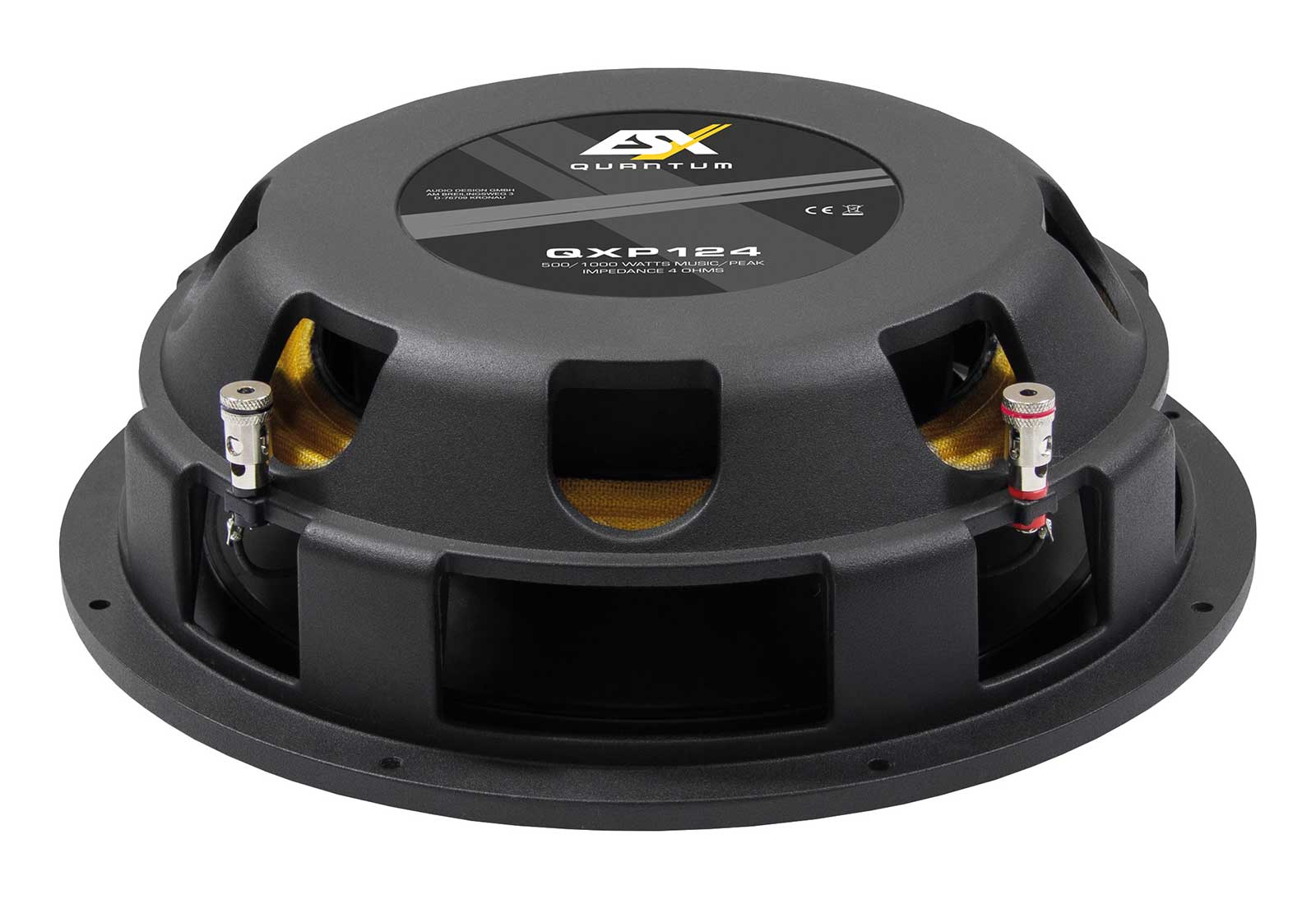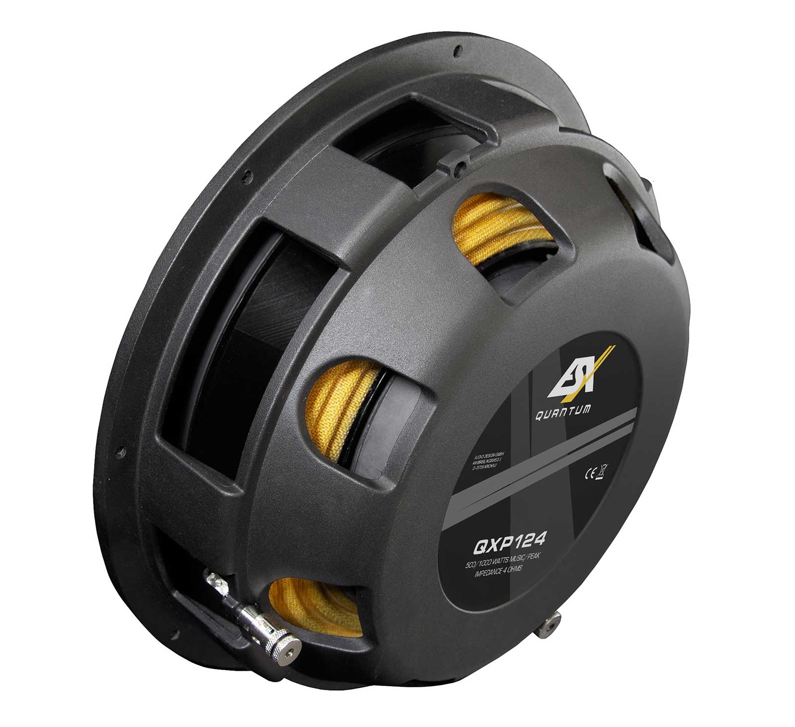 Der größere QXP124 ist die Antwort für alle, die das scheinbar Unmögliche suchen: ein 30-cm-Subwoofer, der mit nur 89 mm Einbautiefe das Fahrzeug zum Beben bringt. Die Performance, die dieser kompakte Subwoofer aus minimalem Volumen ab etwa 22 Litern generiert, ist schlichtweg beeindruckend. Auch bei ihm sorgt der präzise gefertigte Aluminium-Gusskorb für maximale Stabilität, während das formschöne Schutzgitter den hochwertigen Auftritt perfekt abrundet. Für echte Bass-Enthusiasten bleibt mit dem QXP124 kein Wunsch offen.