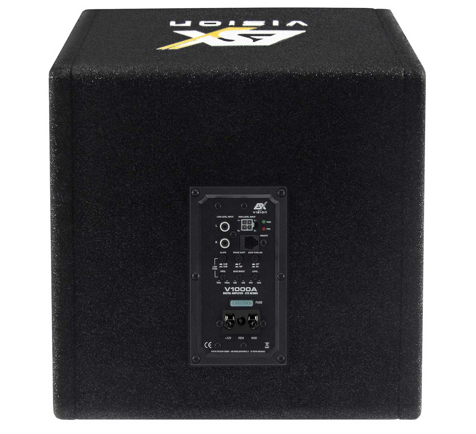 Mit der neuen V1000A bringt ESX eine aktive Subwooferbox auf den Markt, die sich besonders an Liebhaber des guten Klangs wendet. Daher gehört sie auch zur VISION Familie, in der sich nur die hochwertigsten Produkte aus dem ESX-Programm befinden. Im Fall der V1000A bedeutet es, dass ein besonderes Augenmerk auf bestmöglichen Klang, Impulstreue und tiefe Bass-Abstimmung gelegt wurde - und das bei möglichst geringen Abmessungen!