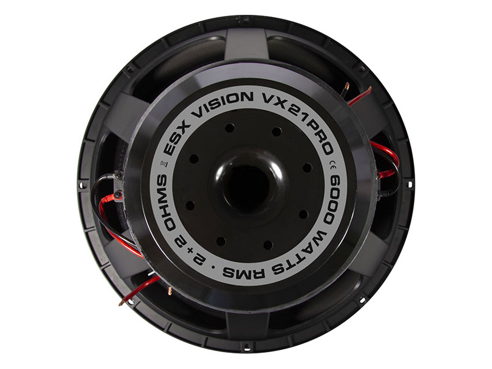 Mit dem VX21PRO aus der VISION Serie bietet ESX einen SPL Subwoofer der Superklasse. Belastbar bis zu 6.000 Watt RMS und 12.000 Watt Musikleistung. Alleine schon die Eckdaten dieses Giganten sind mehr als beeindruckend und lässt die SPL-Fans in Verzückung geraten: