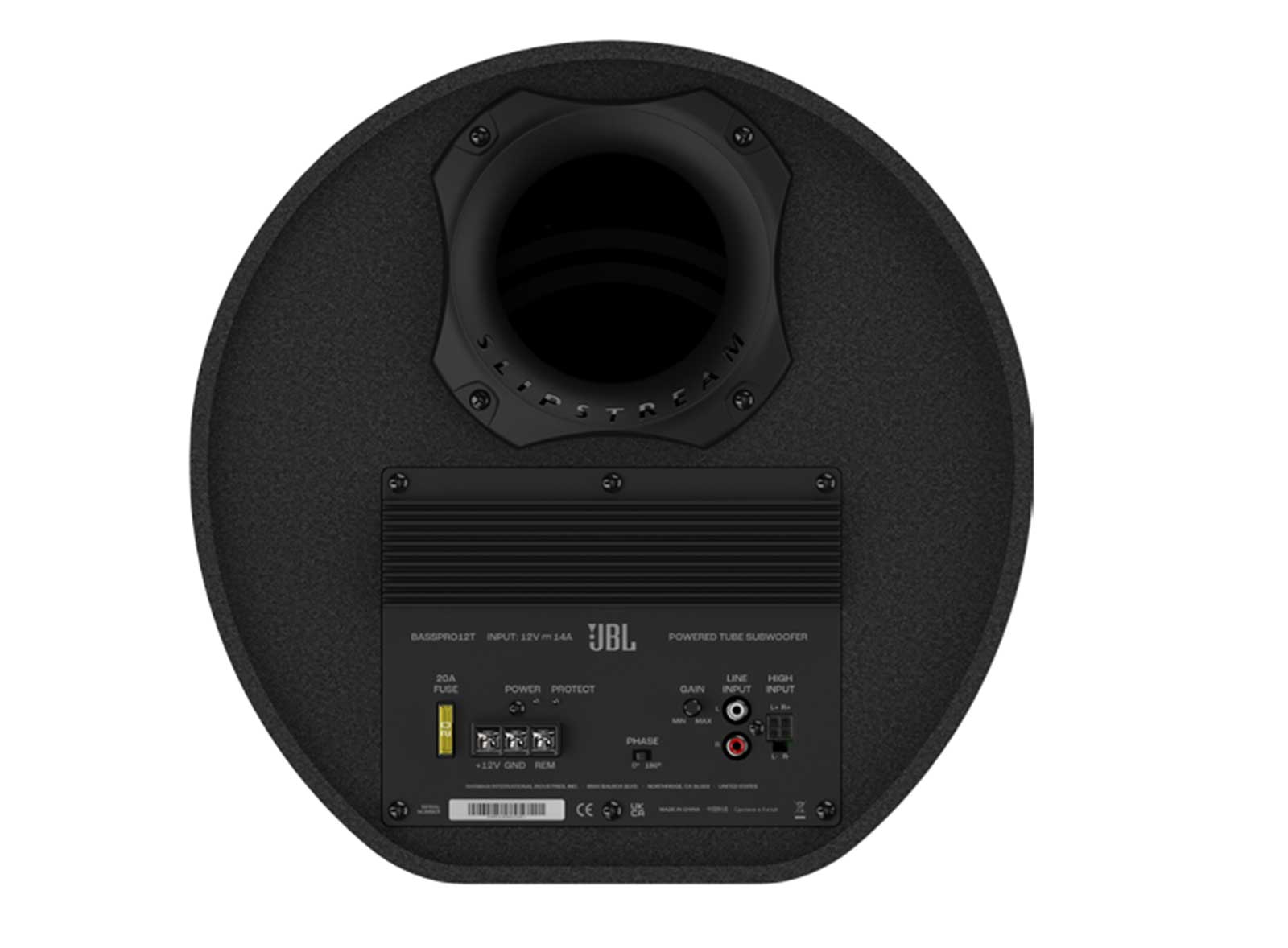 Der JBL BassPro Tube Subwoofer liefert dank der patentierten Slipstream-Port-Technologie von JBL 150 Watt rauschfreien, tiefen Bass. Der Slipstream-Port wurde mathematisch so konstruiert, dass der Luftstrom im Port turbulenzfrei bleibt, wodurch die üblichen Nachteile herkömmlicher Portboxen vermieden werden. In Verbindung mit dem integrierten 150-W-RMS-Verstärker liefert der BassPro Tube Subwoofer wirklich beeindruckende Leistung. Außerdem ist die Bass Volume Remote Control für eine einfache Einstellung im Lieferumfang enthalten, sodass Sie nicht mehr zum Kofferraum laufen müssen.