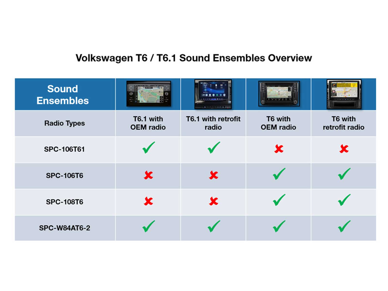 - Vorprogrammierte Soundeinstellungen mit EQ und Laufzeitkorrektur für VW T6 und T6.1