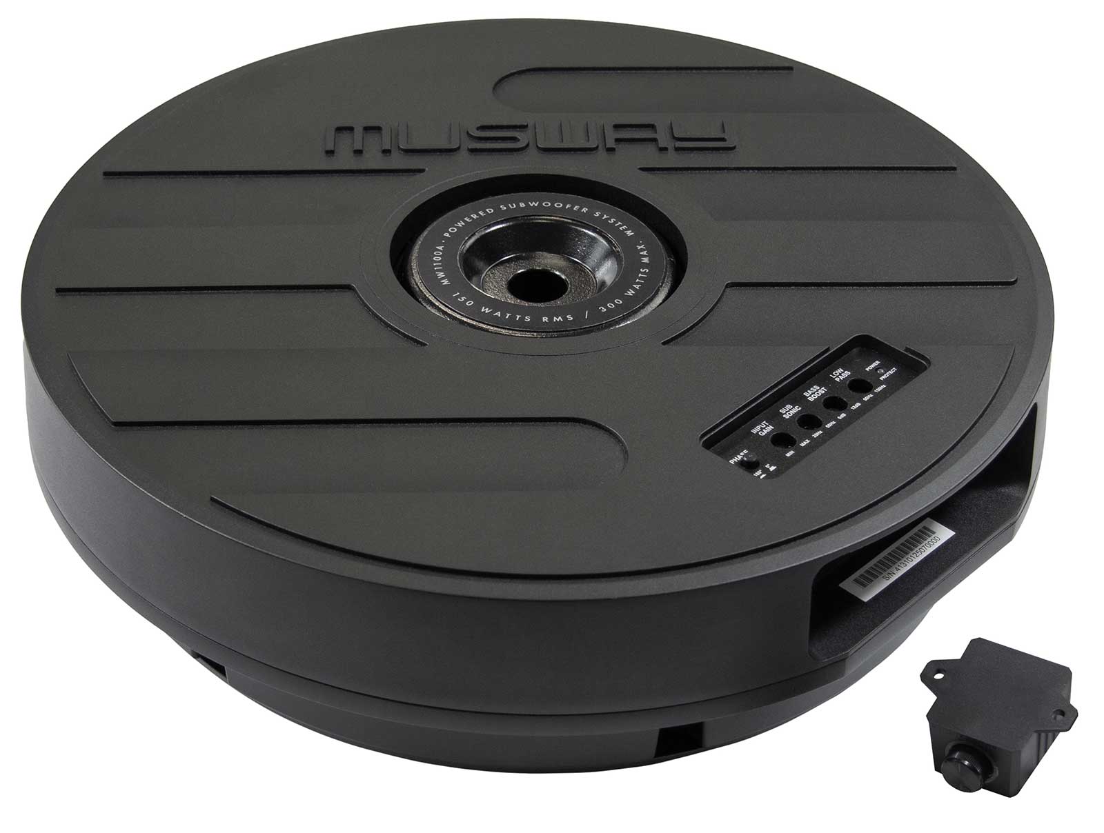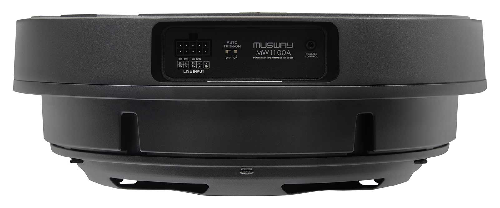 Eine weitere Neuerung ist der aufwendig konstruierte, kurzschlussfeste Stromstecker. Er lässt sich bei Bedarf mühelos abnehmen - ideal, wenn das Reserverad schnell und unkompliziert entnommen werden muss. So verbindet das System maximale Sicherheit mit höchstem Bedienkomfort im Alltag. Unverändert geblieben sind die bewährten Komponenten: Der hochwertige 28 cm High-End-Subwoofer mit 76 mm Schwingspule und robuster Metallmembran ist schon alleine eine Klasse für sich. Er hält selbst extremen Druckverhältnissen im Gehäuse stand. Auch die leistungsstarke Class A/B Endstufe mit 150 Watt RMS bleibt erhalten und sorgt für den typischen, dynamischen Musway Sound. Selbstverständlich verfügt der MW1100A über klassische Cinch- und moderne High-Level-Eingänge mit Auto Turn-On.