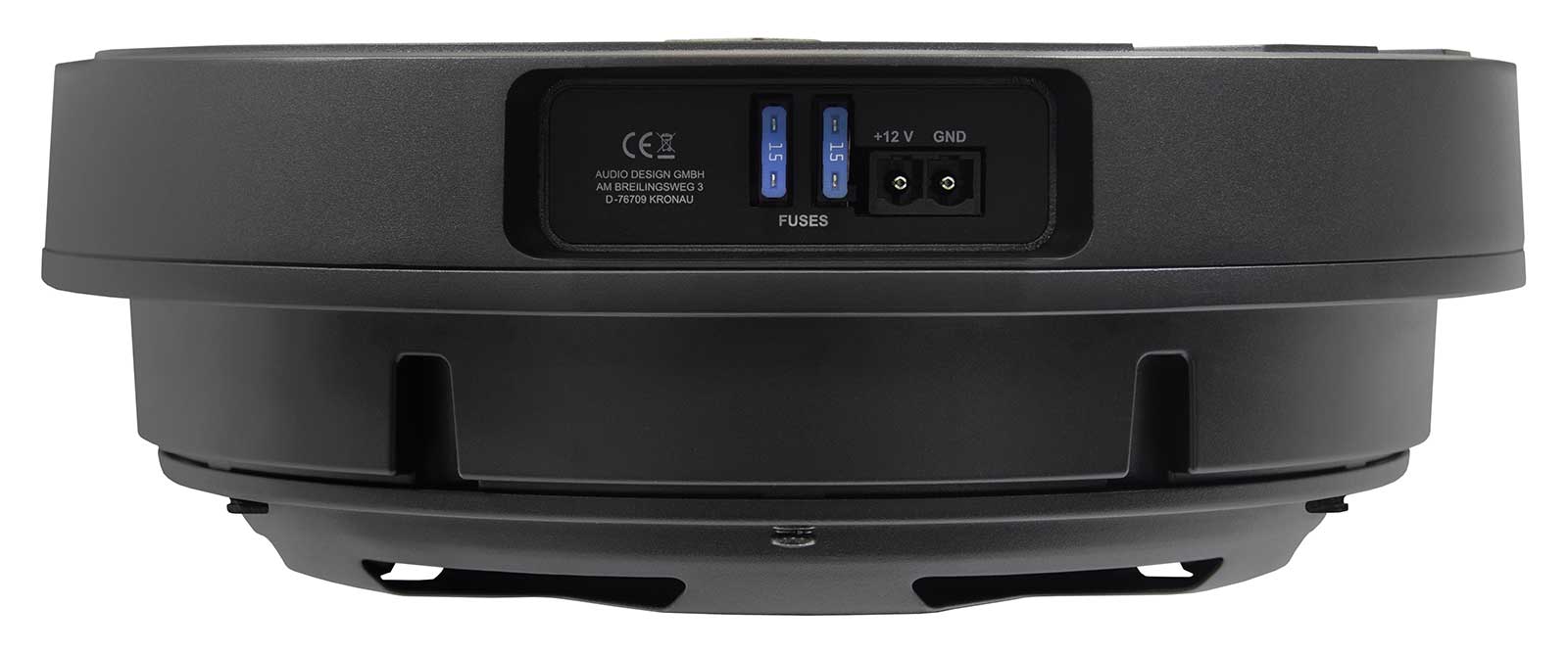Der Korb des Woofers und das Gehäuse bestehen aus einem einzigen, präzise gefertigten Teil. Dadurch konnte eine zusätzliche mittige Dichtungssicke integriert werden, über die das Aluguss-Gehäuse perfekt abgedichtet wird. Dank der durchdachten, integralen Konstruktion kann die Befestigungsschraube des Reserverads direkt durch den Subwoofer geführt werden. Mit einem Durchmesser von nur 36 cm und einer Höhe von lediglich 12,1 cm passt der MW1100A problemlos in Not- und Reserveräder ab etwa 15 Zoll Felgengröße. Das Ergebnis: eine saubere, unsichtbare und extrem platzsparende Installation - bei voller, kompromissloser Bassperformance.