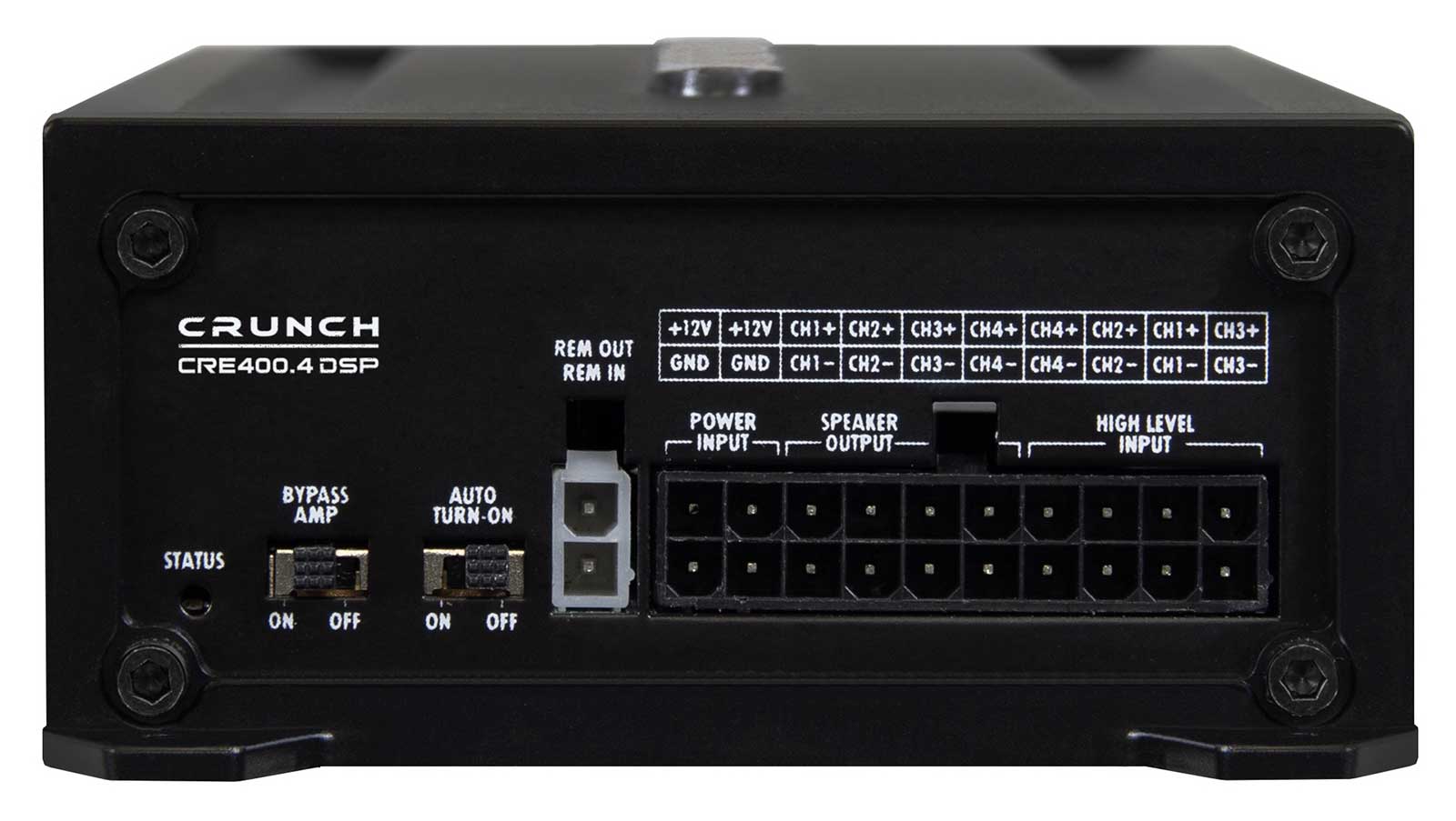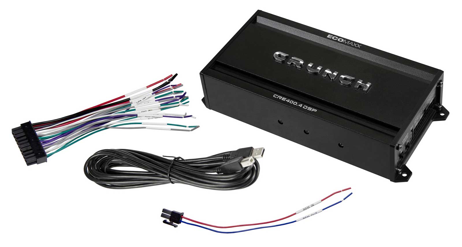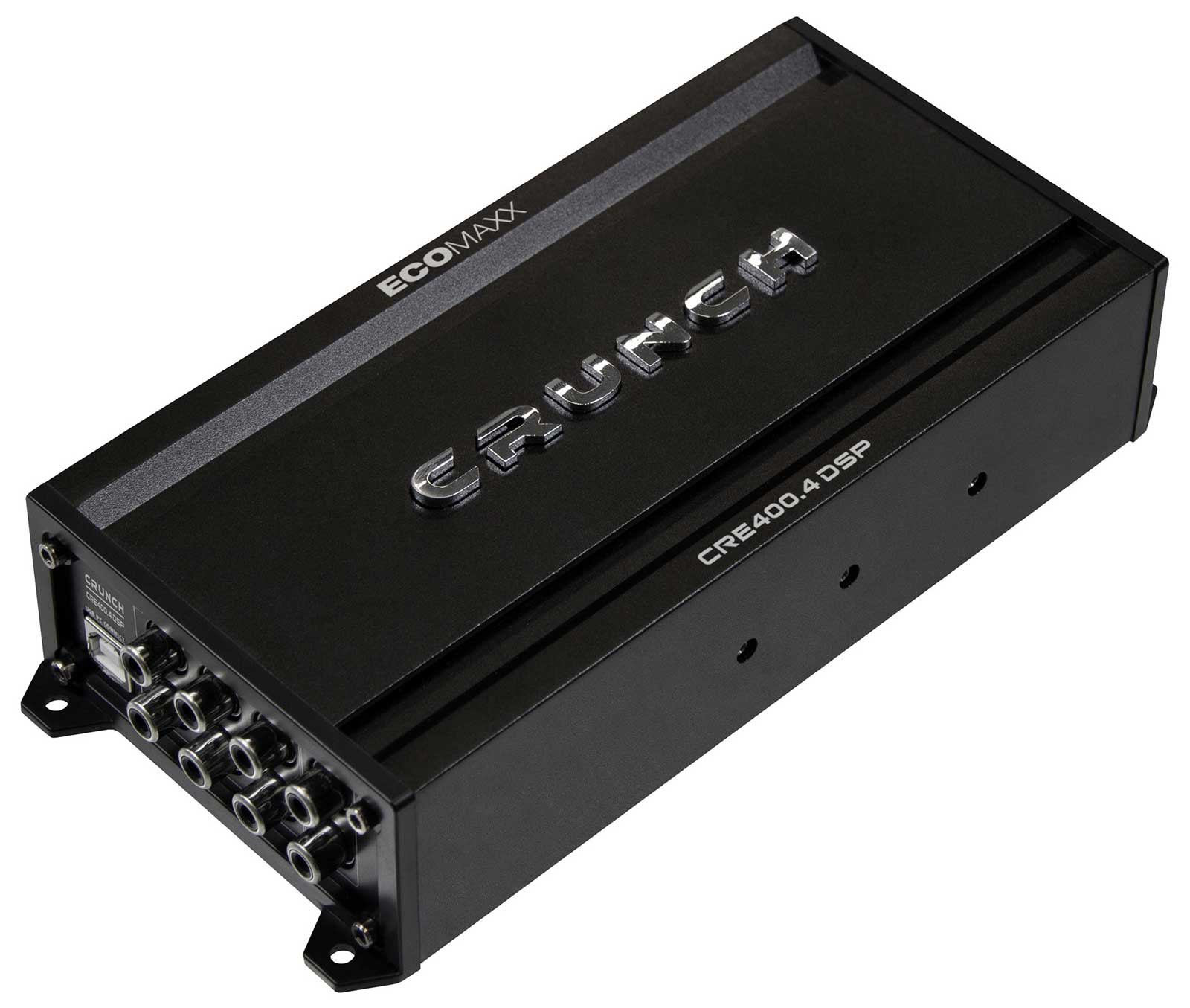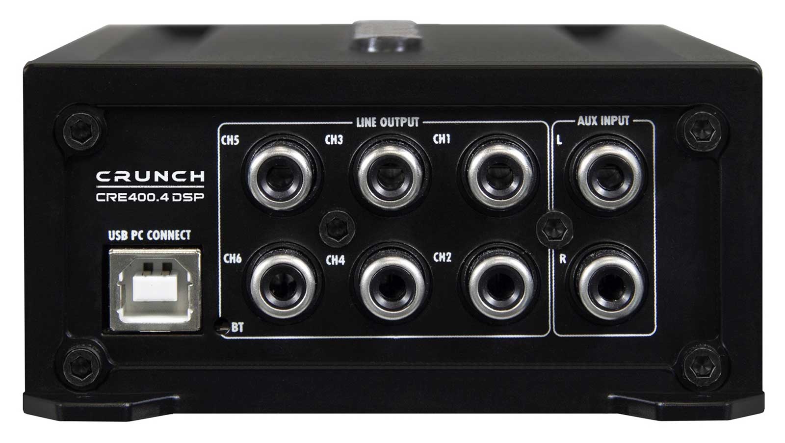 Crunch bietet mit dem raffinierten CRE400.4DSP einen außergewöhnlichen 6-Kanal-Soundprozessor mit vorinstallierten Presets, der eine analoge 4-Kanal-Endstufe in einem äußerst kompakten Gehäuse integriert. Dank des integrierten Bluetooth-Moduls ermöglicht das Gerät zudem kabelloses Musik- streaming - ein echtes Highlight in dieser Klasse. Kurz gesagt: Der Mini-DSP-Amp bietet die Möglichkeit, Front- und Hecksysteme zu betreiben, während ein zusätzlicher Cinch-Ausgang die Anbindung eines weiteren Verstärkers für einen Subwoofer über den DSP erlaubt - und das alles zu einem unschlagbaren Preis!