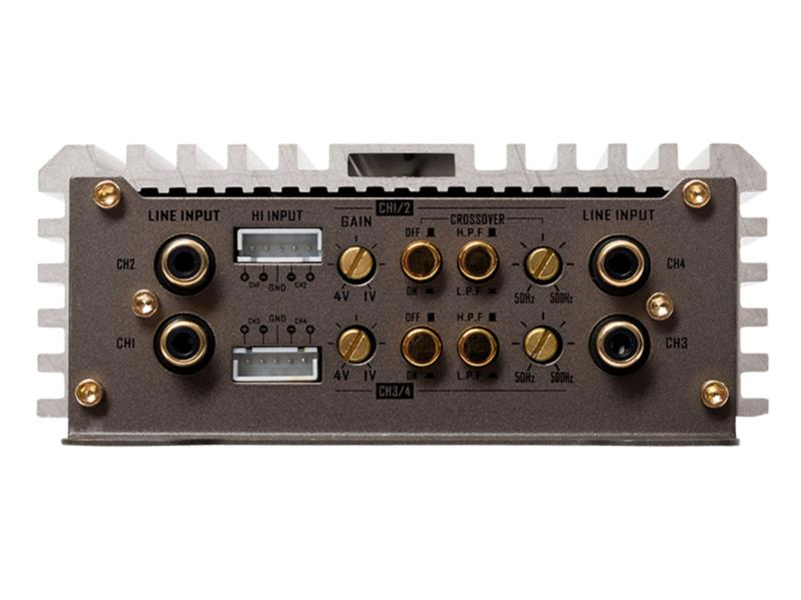 Ausgangsleistung: 4x 85 / 4 x 110 W RMS an 4 / 2 Ohm oder gebrückt 2x 220 W RMS an 4 Ohm