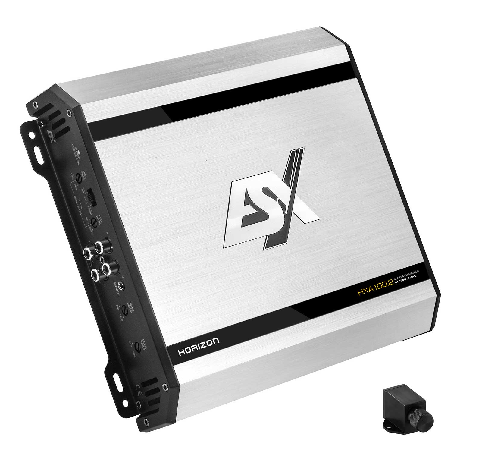 Die HORIZON HXA100.2 ist ebenfalls als klassische Class A/B- Endstufe aufgebaut. Mit 2x 70/110 Watt RMS an 4 bzw. 2 Ohm eignet sie sich bestens für den Antrieb von Front- oder Hecklautsprechern. Doch auch hier behielt man den optionalen Subwooferbetrieb im Fokus: Im Brückenbetrieb liefert die Endstufe stabile 220 Watt RMS (440 Watt max.), genug Power, um einen kräftigen Subwoofer zu betreiben. Bandpass- Mode und Bass Boost helfen ebenfalls, um den Subwoofer perfekt einzupegeln. Eine praktische Basspegel Fernbedienung, die in dieser Preisklasse eher selten anzutreffen ist, ist ebenfalls inkludiert.
