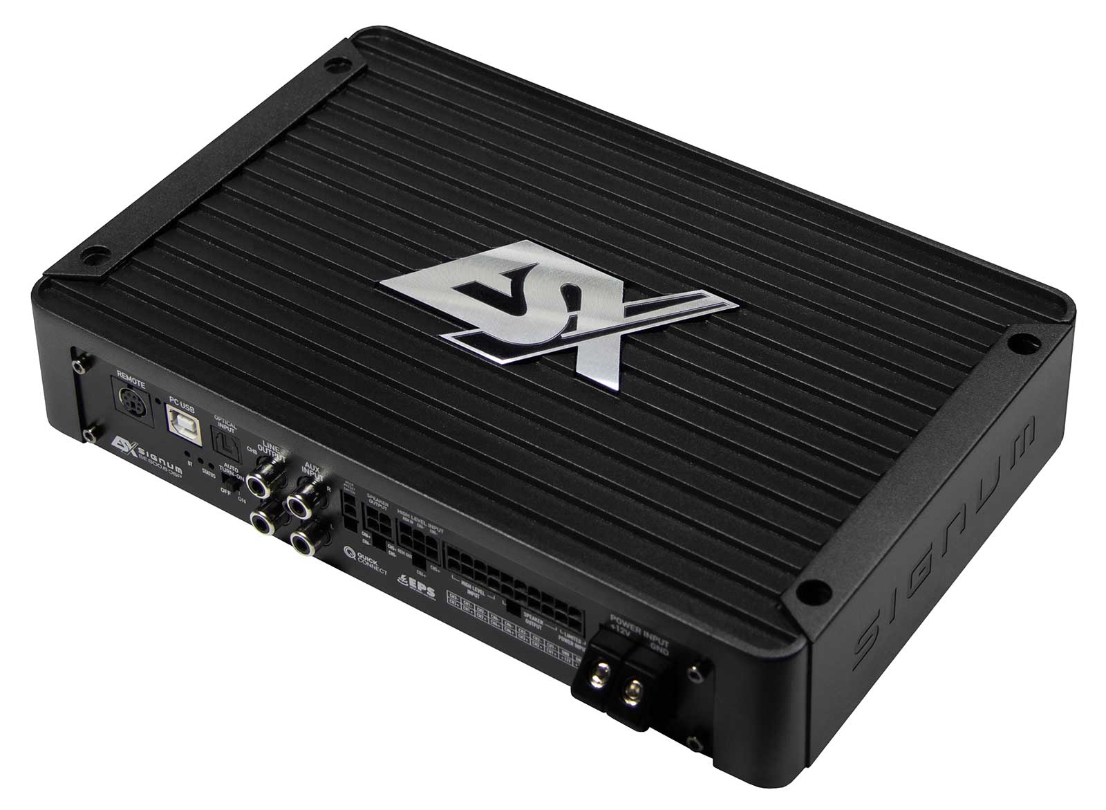 Die SIGNUM SE800.6DSP Endstufe eröffnet aktuell den Einstieg in die hochwertige ESX DSP-Audio-Technologie. Mit 6 Verstärker- und 8 DSP-Kanälen liefert sie herausragende Klangqualität bei enormer Anpassungsfähigkeit. Dank integriertem Bluetooth sowie Steuerung per App oder PC ist die Bedienung komfortabel und vielseitig. Ein besonderes Highlight ist das automatisch schaltbare Cabrio-Setup, das den Klang bei geöffnetem Verdeck optimal anpasst. Abgerundet wird das Gesamtpaket durch ein elegantes und robustes Aluguss-Gehäuse. Die ideale Schaltzentrale, um ein Soundsystem auf das nächste Level zu heben.
