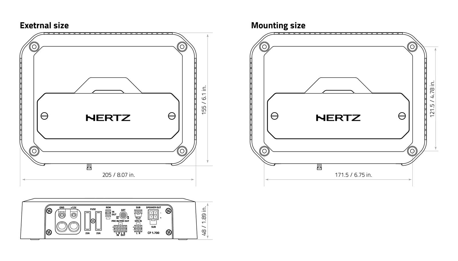 Steigern Sie die Klangqualität mit dem Hertz CENTO POWER CP 4.800, der mit Hi-Res-Audio-Zertifizierung und einem Frequenzbereich von 10 Hz bis 41 kHz jede Nuance Ihrer Musik einfängt. Dieses Modell vereint ein herausragendes Verhältnis von Leistung zu Größe mit einer Effizienz von über 85 %, eingebettet in ein robustes Aluminium-Druckgussgehäuse für erstklassige Leistung und stilvolles Design. Der Vierkanal-Verstärker verfügt über vollständige Plug-&-Play-Verbindungen für eine einfache Installation. Fortschrittliche Crossover-Filter und Bassverstärkungsoptionen ermöglichen eine maßgeschneiderte Klanganpassung. Perfekt für Audiophile, die Funktionalität und elegantes Design in ihrem Auto-Audiosystem vereinen möchten.