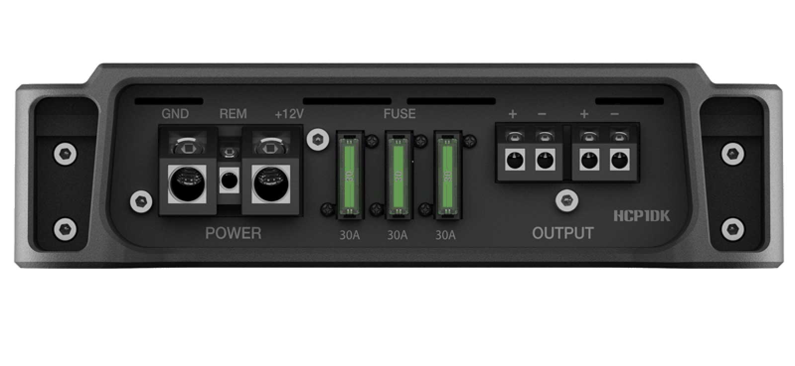 Der Mono-Marineverstärker HCP 1MDK verfügt über eine 2 Ohm-stabile Ausgangsstufe der neuesten Class D Generation, die eine beeindruckende RMS-Leistung von 740 W x 1 (4 Ohm) erreicht. Entwickelt und getestet für die reale Anwendungsumgebung (UV, Salznebel, Vibrationen, hohe/niedrige Temperaturen, Temperaturschock, Staub), verfügt der HCP 1MDK über ein kompaktes Design mit einem stranggepresstem Aluminiumkühlkörper, der eine effektive Wärmeübertragung gewährleistet. Die spezielle symmetrische Eingangsschaltung unterdrückt elektromagnetische Störungen und die Hi-Level- und Low-Level-Eingänge sind mit jeder Quelle kompatibel. Der einstellbare Bass-Boost (50 Hz) ist zwischen 0 dB und 6 dB einstellbar und verleiht dem Subwoofer mehr Punch wohingegen der SUBSONIC-Filter (24 dB - 25 Hz) sehr tiefe Infraschallfrequenzen aus dem Musiksignal filtert, um Schäden am Subwoofer zu vermeiden. Der stufenlos einstellbare PHASE-Regler (0 bis 180°) optimiert die Ortbarkeit des Subwoofers im Auto. Die optionale Remote Volume Control (HRC) bietet die Möglichkeit, die Lautstärke des Subwoofers am Armaturenbrett einzustellen.