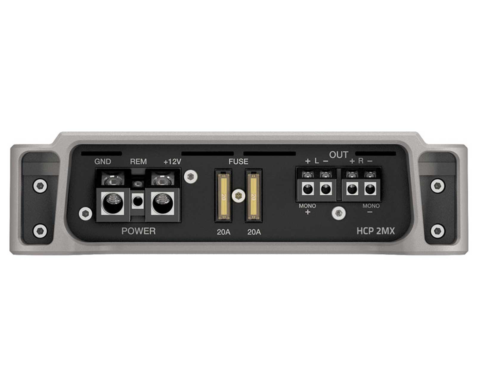 Der HCP 2MX Marine-Verstärker verfügt über ein kompaktes Design, das bereit für offene Gewässer ist, und sorgt für eine Menge saubere Leistung. Der Kühlkörper des HCP M ist aus extrudiertem Aluminium gefertigt, einem Material mit unübertroffener Leichtigkeit, Robustheit und Wärmeableitung. Um die Größe auf ein Minimum zu beschränken, sind die Leistungstransistoren zwischen der Leiterplatte und der Oberseite des Kühlkörpers angeordnet, wo sich die Wärme ansammelt. Entstandene Wärme wird dann zu dem besonderen Ableitungs-"Flügel" an der Seite des Verstärkers geleitet. Sowohl Pre-In- und Speaker-In-Eingänge verfügen über eine speziell ausgewogene Schaltung, die eine hohe Unterdrückung von elektromagnetischen Störungen zur Erzielung rauscharmer Ergebnisse sicherstellt. Die Frequenzweiche des HCP M Verstärkers gewährleistet eine hohe Flexibilität: vollständig einstellbare Tiefpass- und Hochpassfilter mit 12 dB/Okt. und 24 dB/Okt. Flankensteilheit je nach Verstärkermodell; zur Verbesserung niedriger Frequenzen steht auch Bass-Boost zur Verfügung.